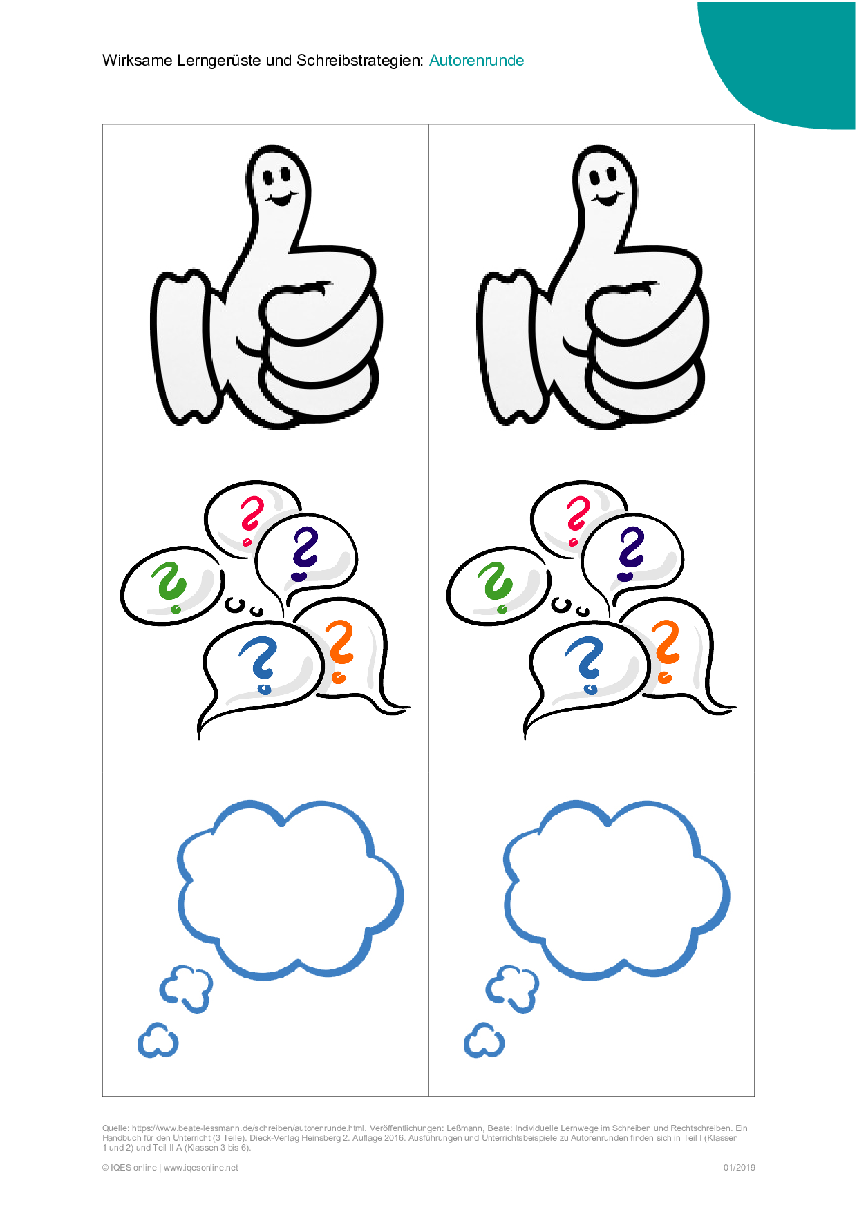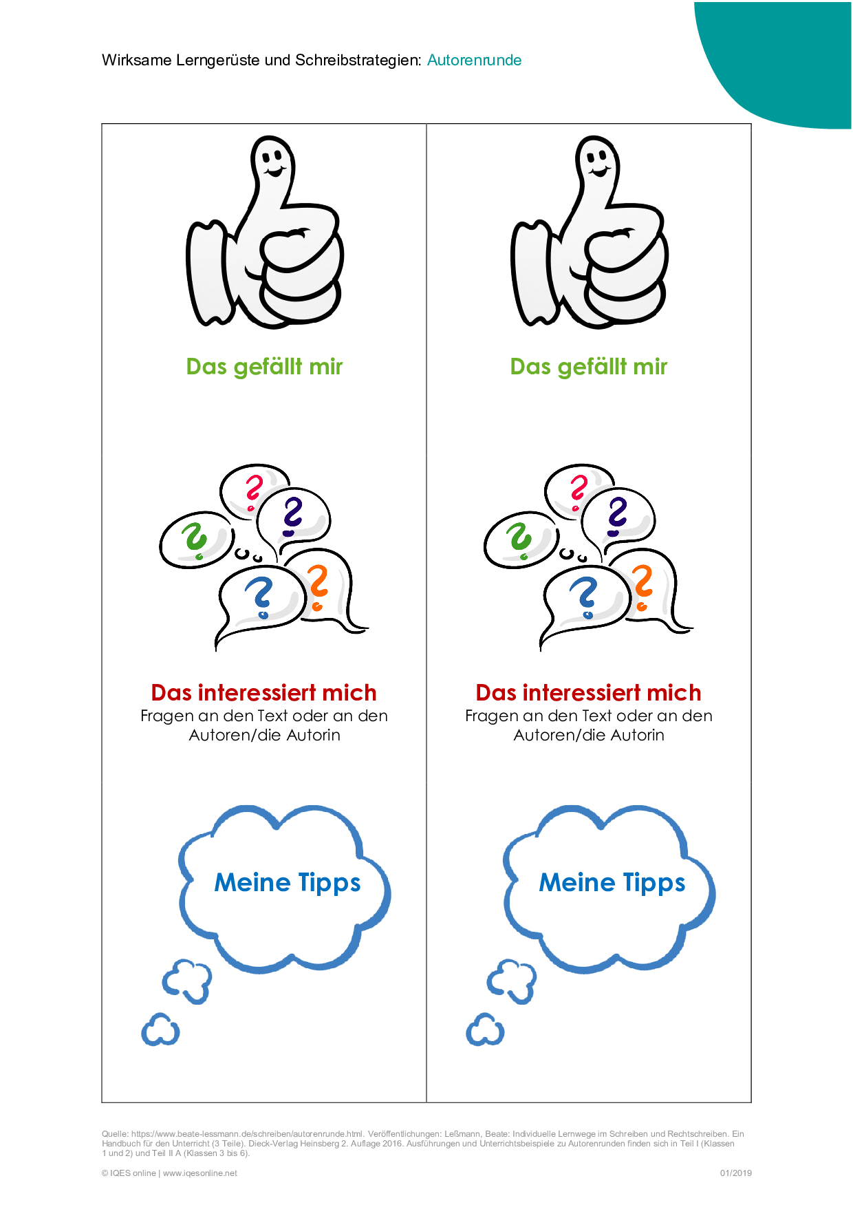 Herkunft: Originaldokumente zur Autorenrunde sowie weitere Tipps und Materialien zur Förderung der Schreibkompetenz: https://www.beate-lessmann.de/schreiben/autorenrunde