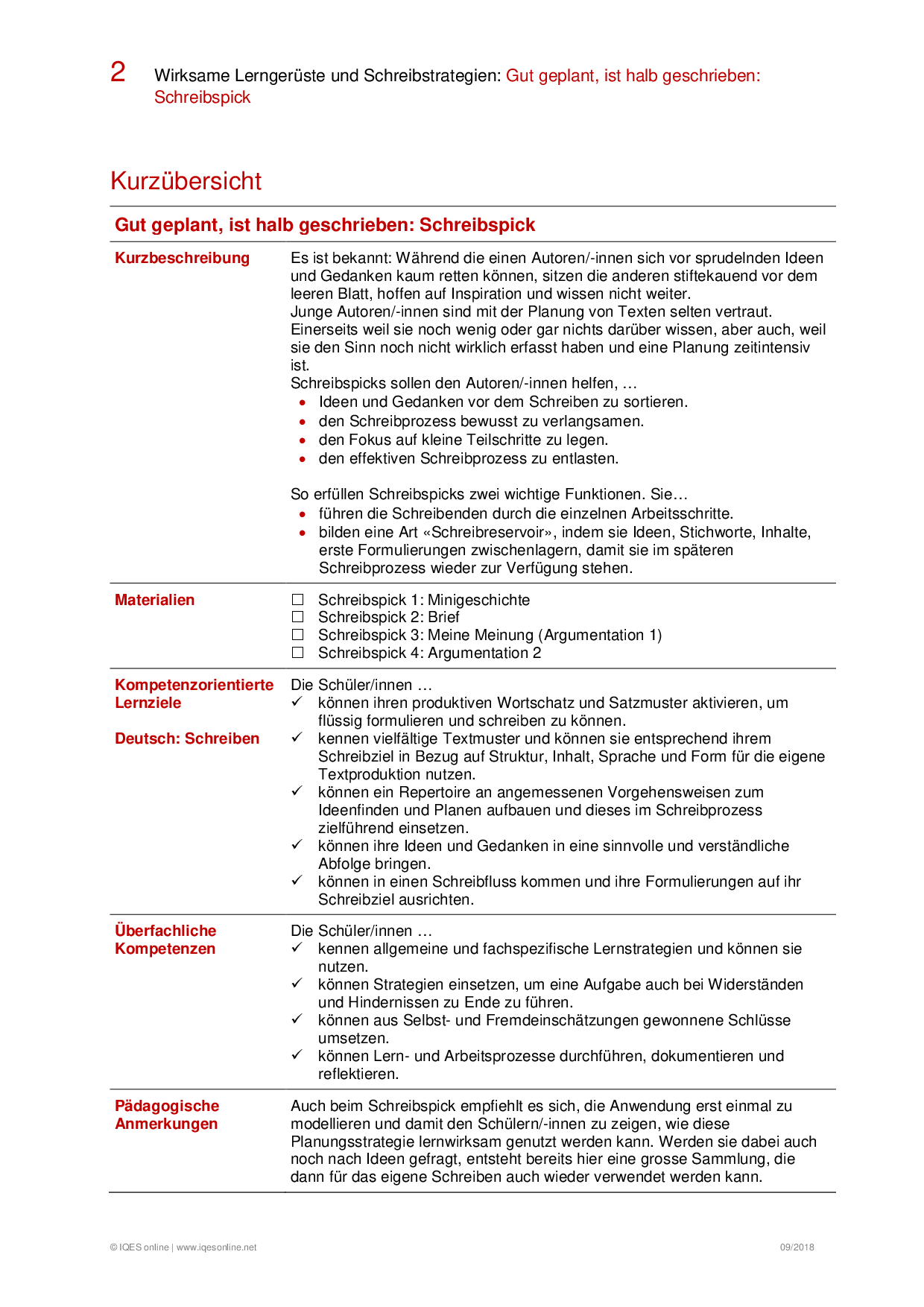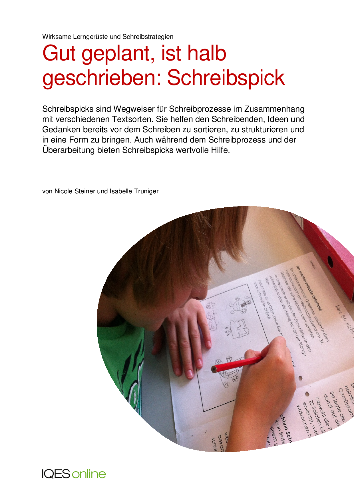 Schreibspicks sind Wegweiser für Schreibprozesse im Zusammenhang mit verschiedenen Textsorten. Sie helfen den Schreibenden, Ideen und Gedanken bereits vor dem Schreiben zu sortieren, zu strukturieren und in eine Form zu bringen. Auch während dem Schreibprozess und der Überarbeitung bieten Schreibspicks wertvolle Hilfe.