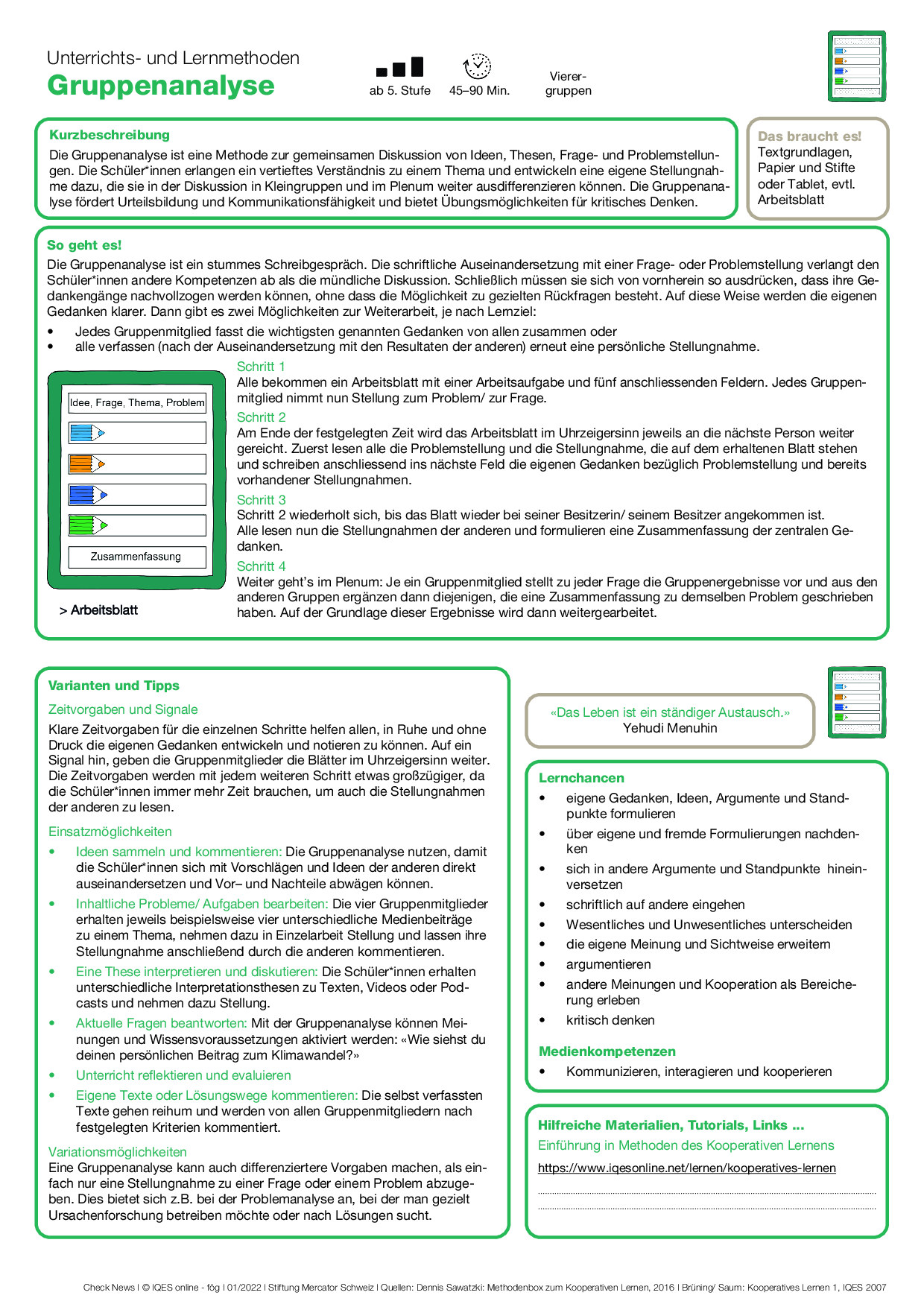 Kurzpräsentation der wichtigsten Inhalte: Nun informiert ihr eure Gruppe reihum über die Kerninhalte eures Beitrags und nehmt dazu Stellung.