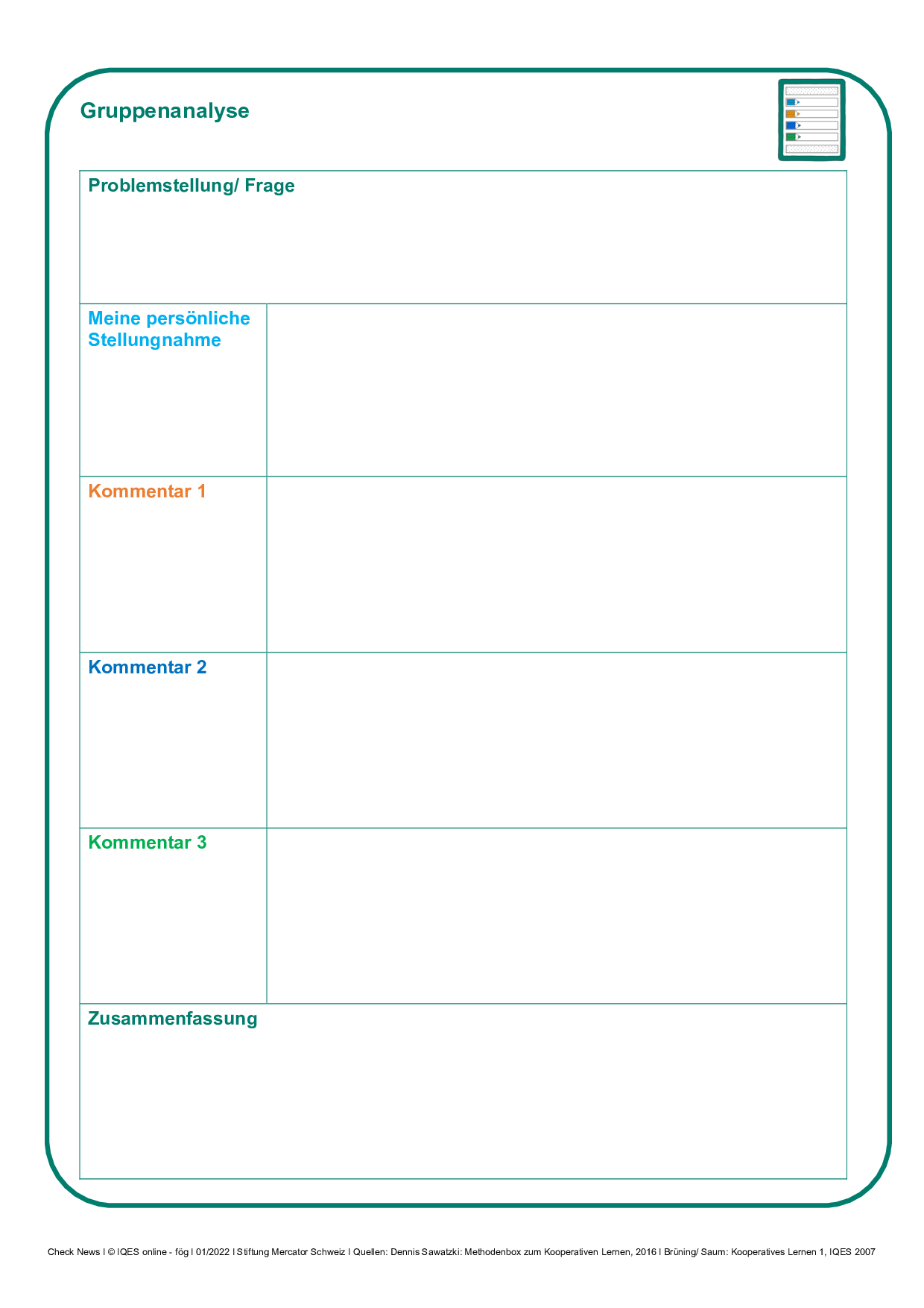 Schaut euch nun eure Beiträge an und erarbeitet eure persönliche Stellungnahme mit Hilfe von «Stellungnahme».