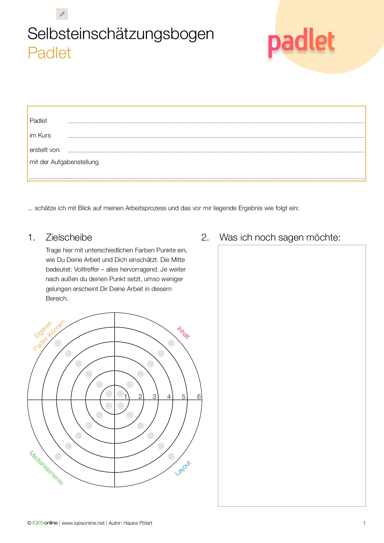Dieser Selbsteinschätzungsbogen kann von Schülerinnen und Schülern nach der Arbeit mit Padlet ausgefüllt werden. Es hilft ihnen zu reflektieren und ein Fazit zu ziehen.