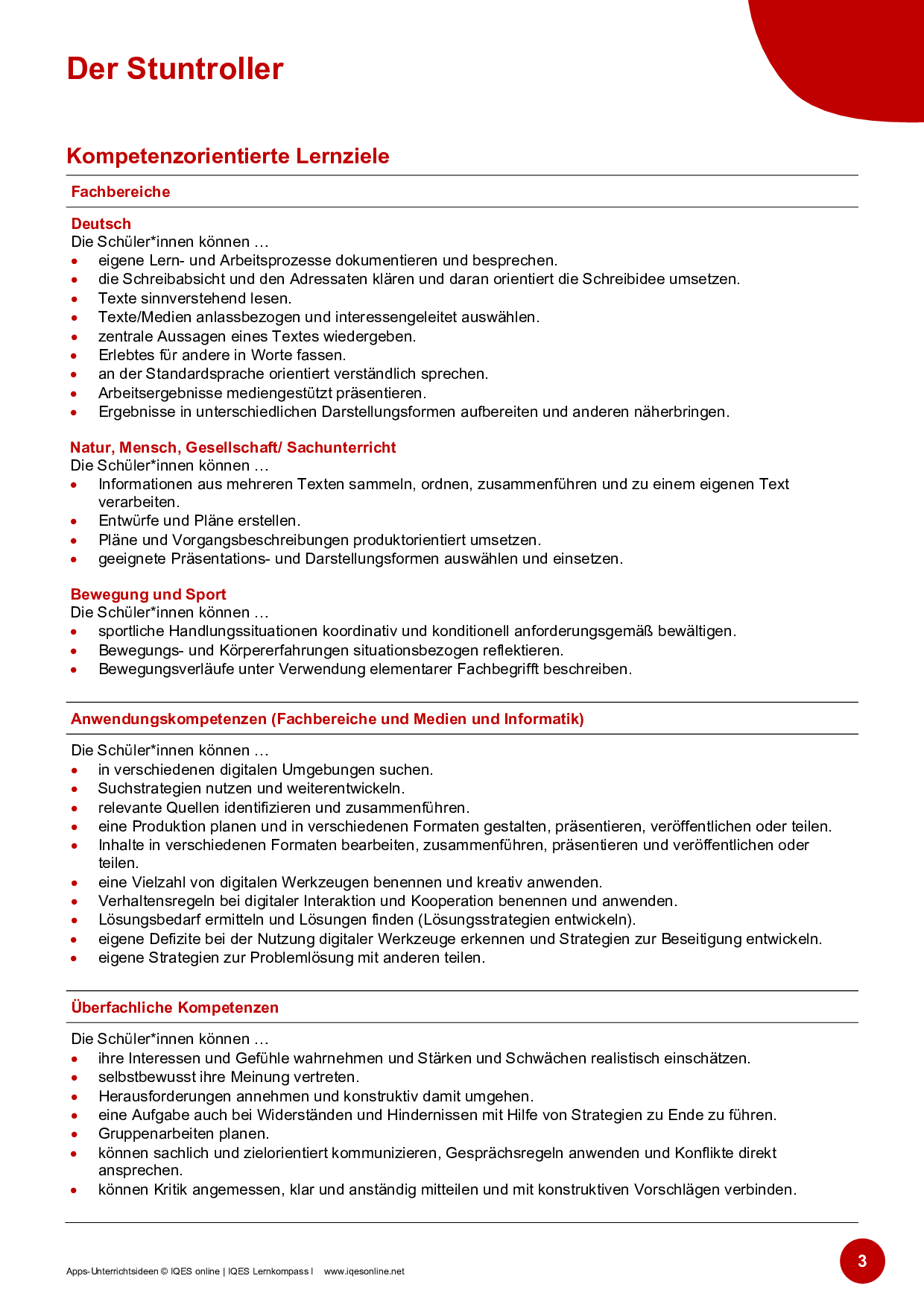 - aktuelle Medien ziel- und zielgruppengerecht nutzen, um ihre Gedanken und ihr Wissen vor Publikum zu präsentieren oder einer Öffentlichkeit verfügbar zu machen (Zyklus 3).