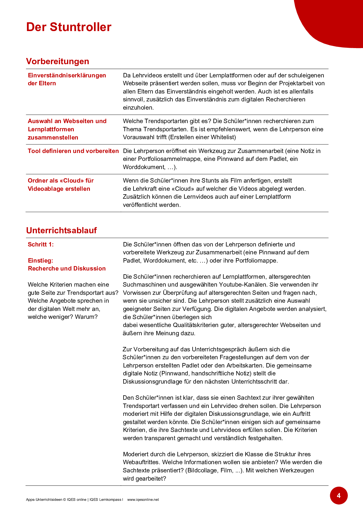- eine Reportage, Dokumentation oder ein Storyboard in der Gruppe erstellen (Zyklus 3).