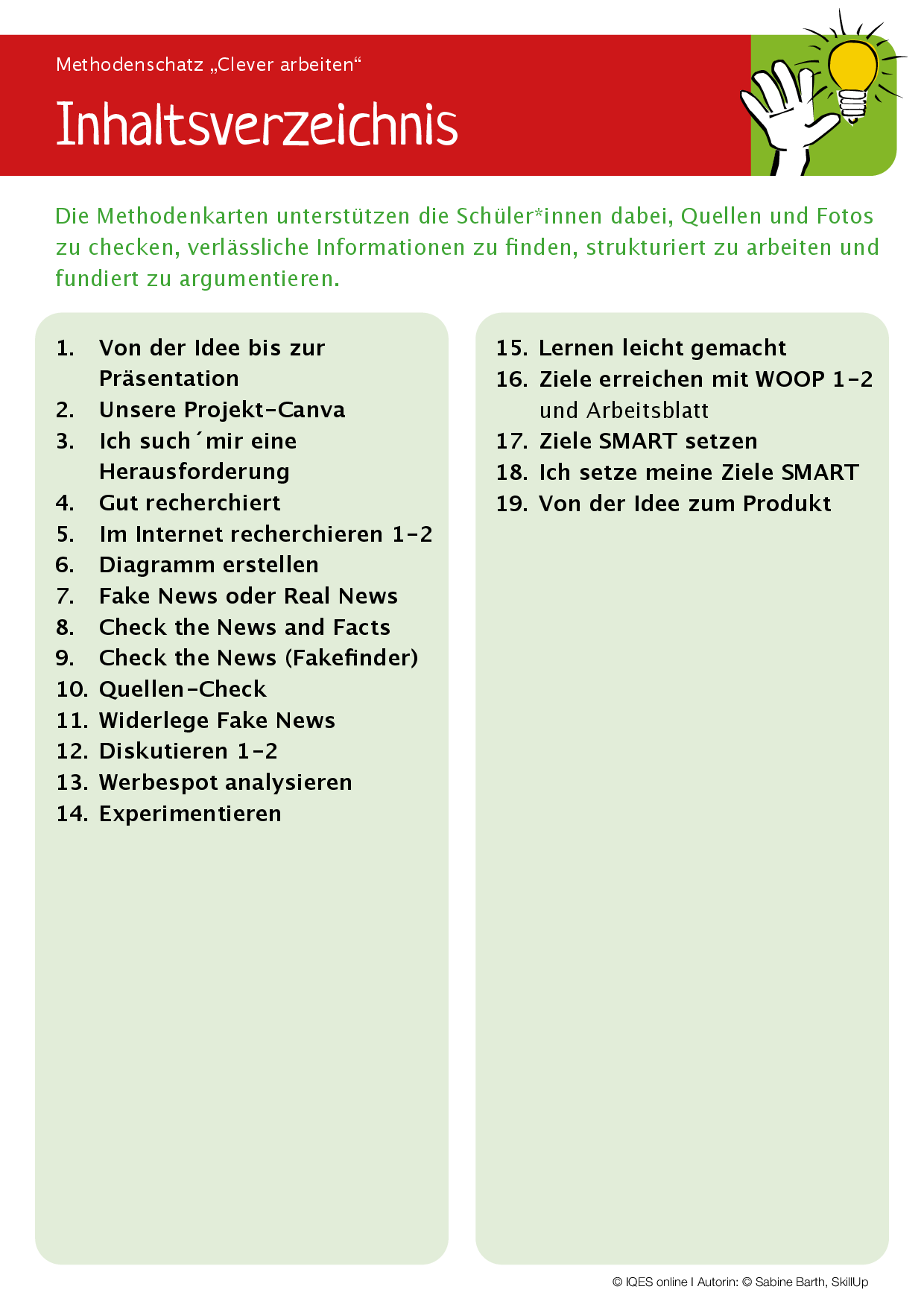 Die Methodenkarten erweitern das Spektrum bewährter Lernformen, die Schülerinnen und Schüler aktivieren, um digitale Werkzeuge. Sie bereichern den Unterrichtsalltag, ermöglichen neue Lernwege und binden bereits vorhandene Kompetenzen der Lernenden ein.