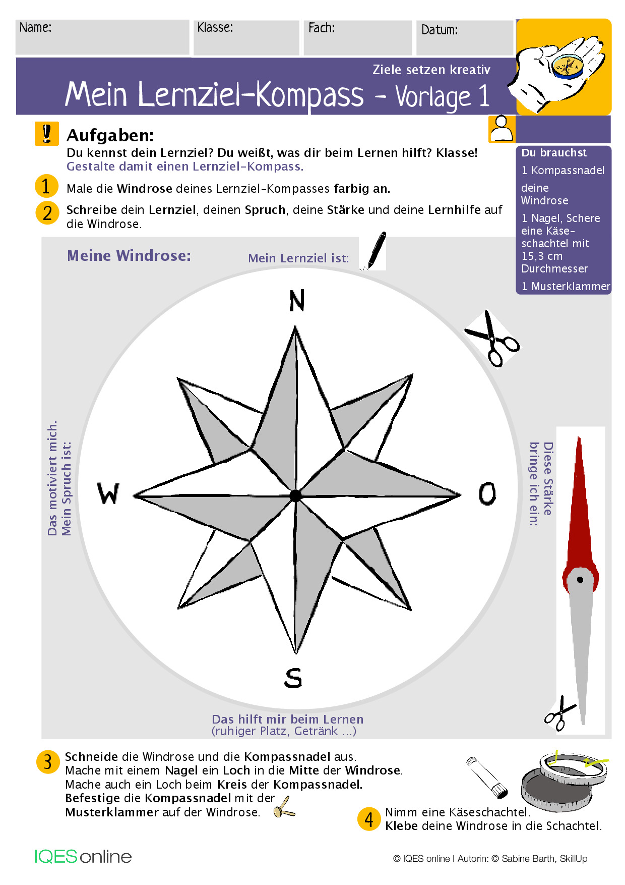Du kennst dein Lernziel? Du weißt, was dir beim Lernen hilft? Klasse! Gestalte mit diesen zwei Vorlagen deinen Lernziel-Kompass.
