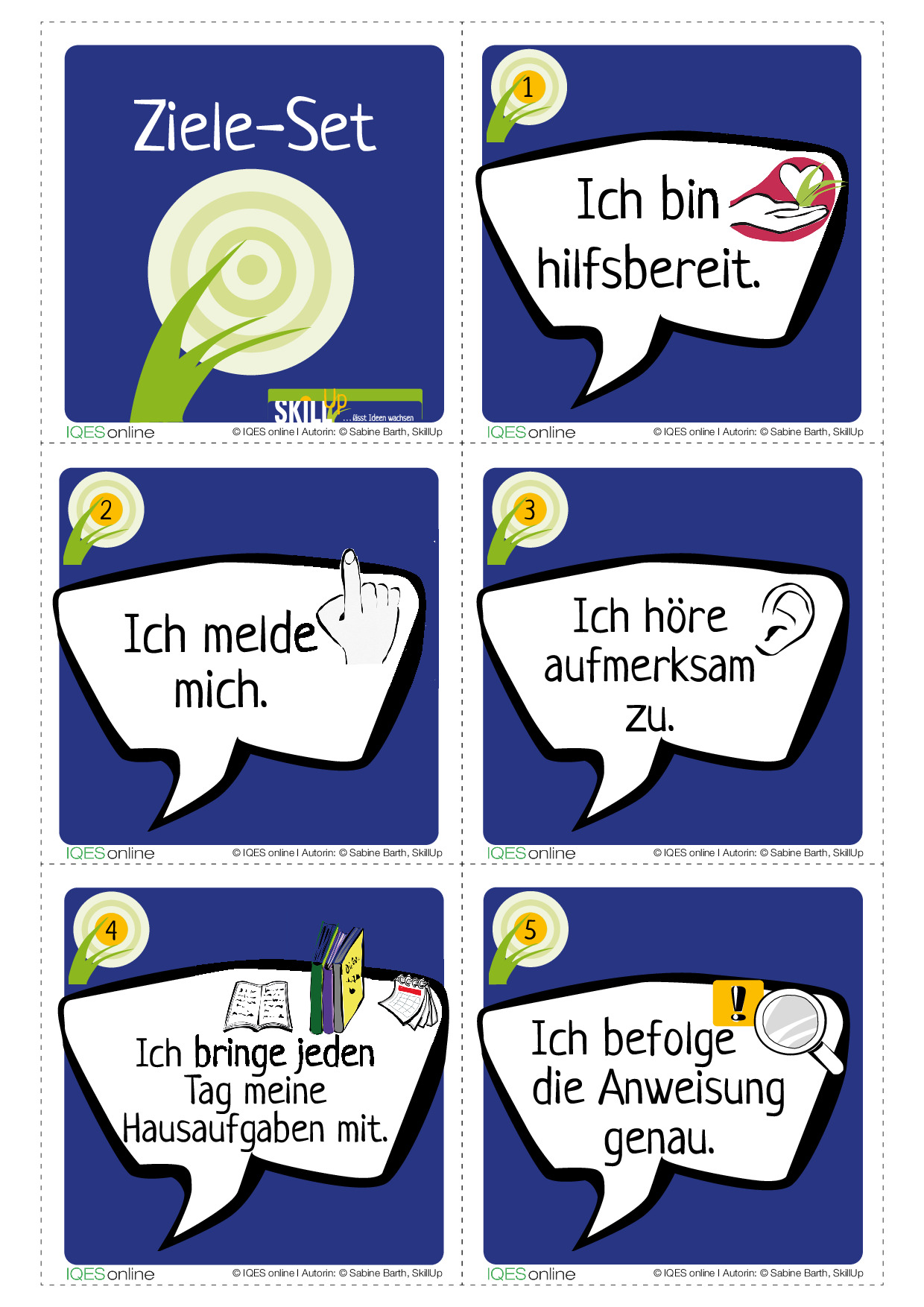 Das Ziele-Kartenset unterstützt die Schüler:innen dabei, ihre Verhaltensziele und überfachlichen personalen und sozialen Kompetenzen für den schulischen Alltag zu entwickeln. Klare, kurze Sätze und die Visualisierung der Ziele-Karten tragen zum leichten Verständnis, zur einfachen Merkfähigkeit, zum selbstregulierten Lernen und zur niederschwelligen Reflexion bei.