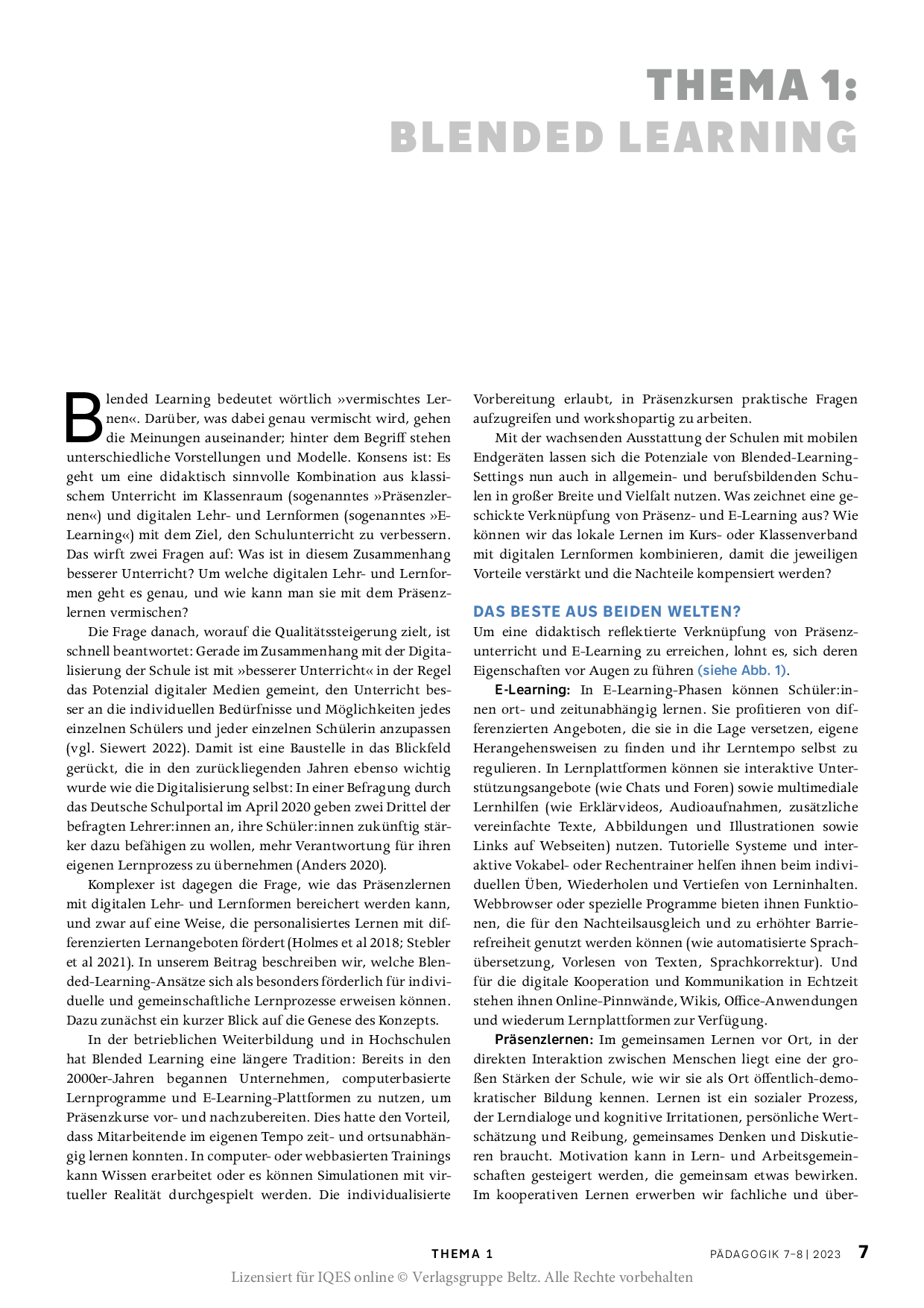 Blended Learning: Artikel aus der Zeitschrift PÄDAGOGIK 7/23