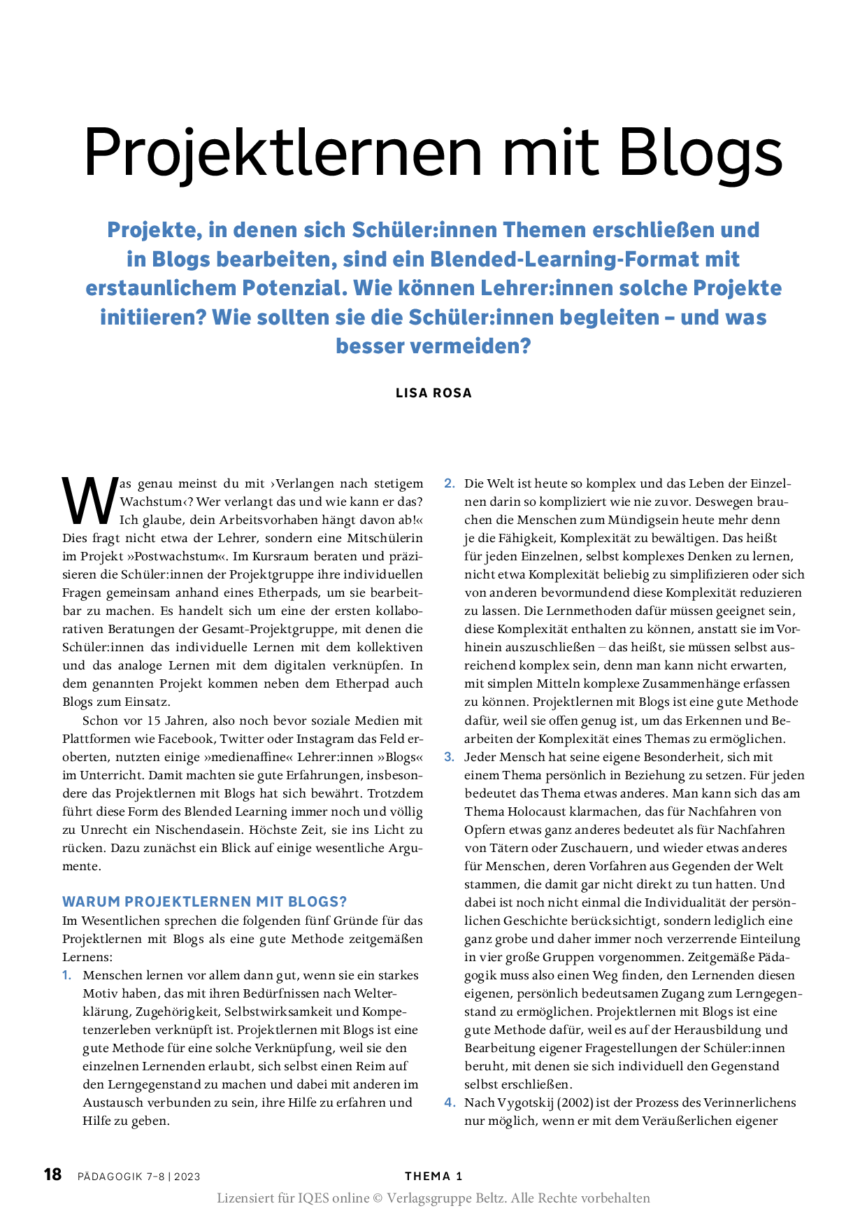Projekte, in denen sich Schüler:innen Themen erschließen und in Blogs bearbeiten, sind ein Blended-Learning-Format mit erstaunlichem Potenzial. Wie können Lehrer:innen solche Projekte initiieren? Wie sollten sie die Schüler:innen begleiten – und was besser vermeiden?