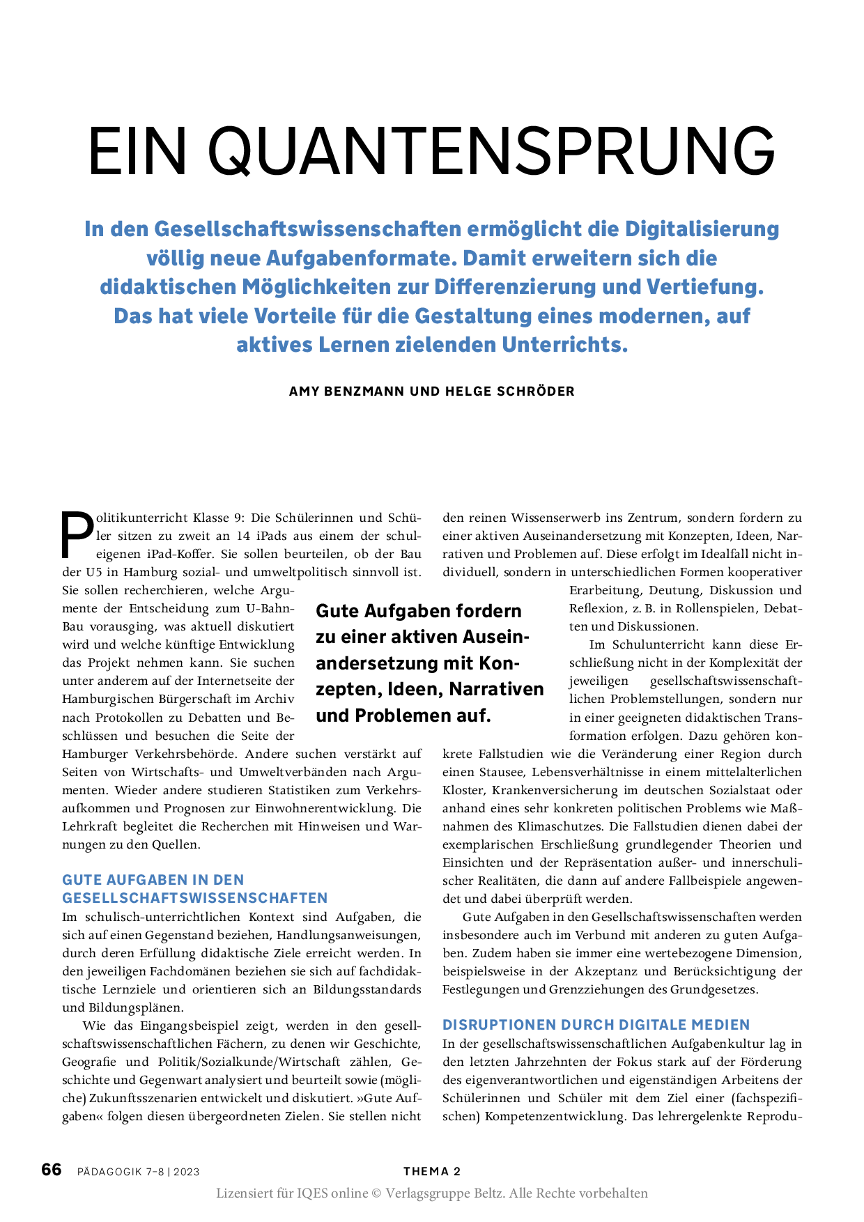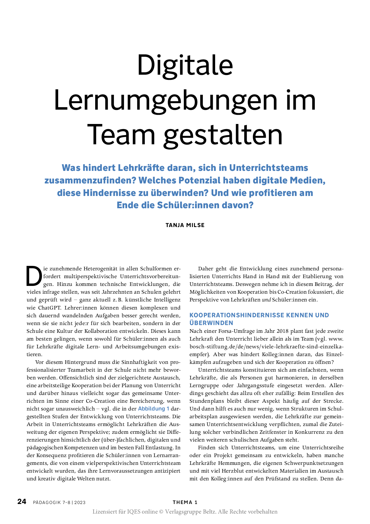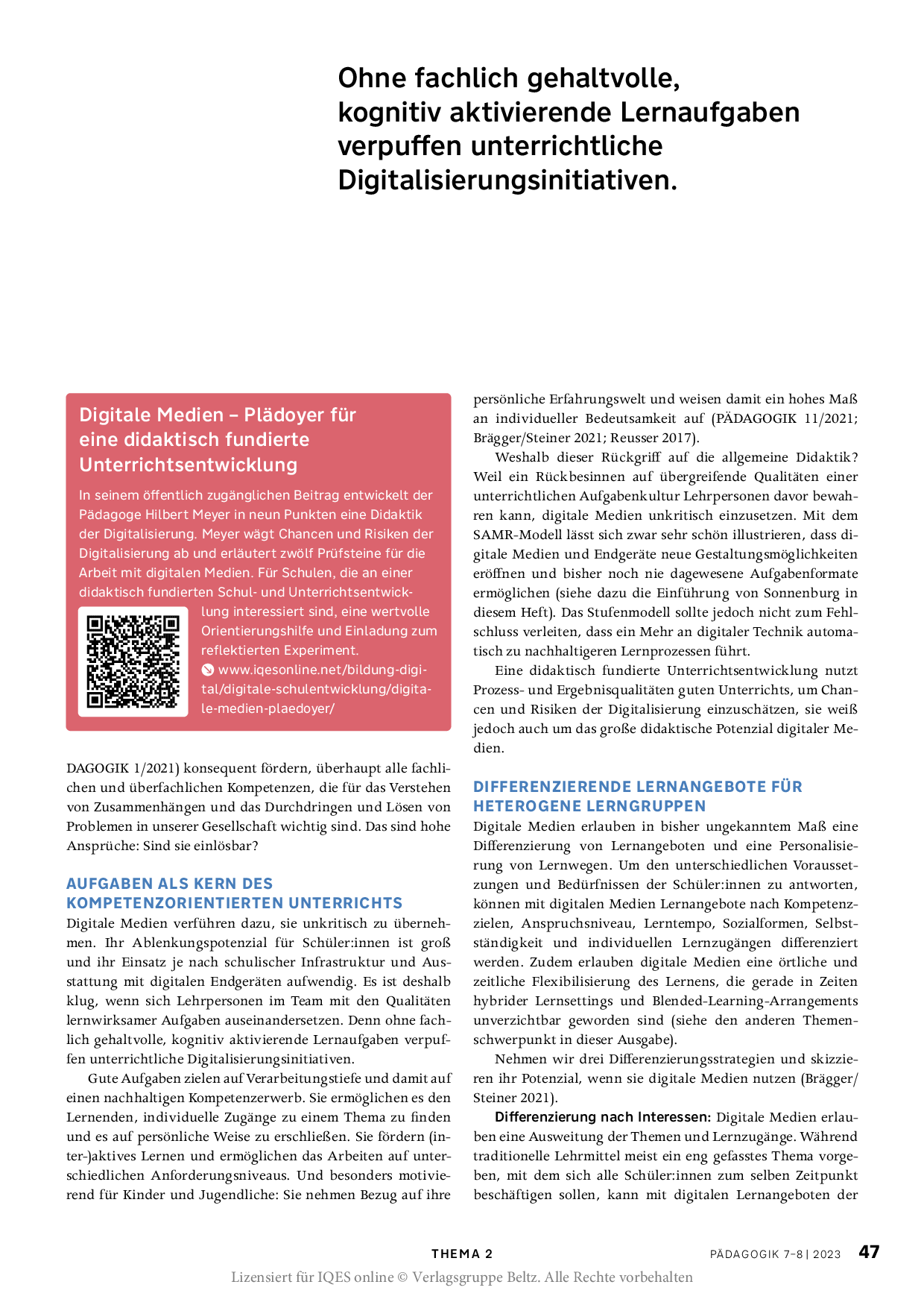 Herkunft: PÄDAGOGIK 07-08/23, Lizensiert für IQES online © Verlagsgruppe Beltz.