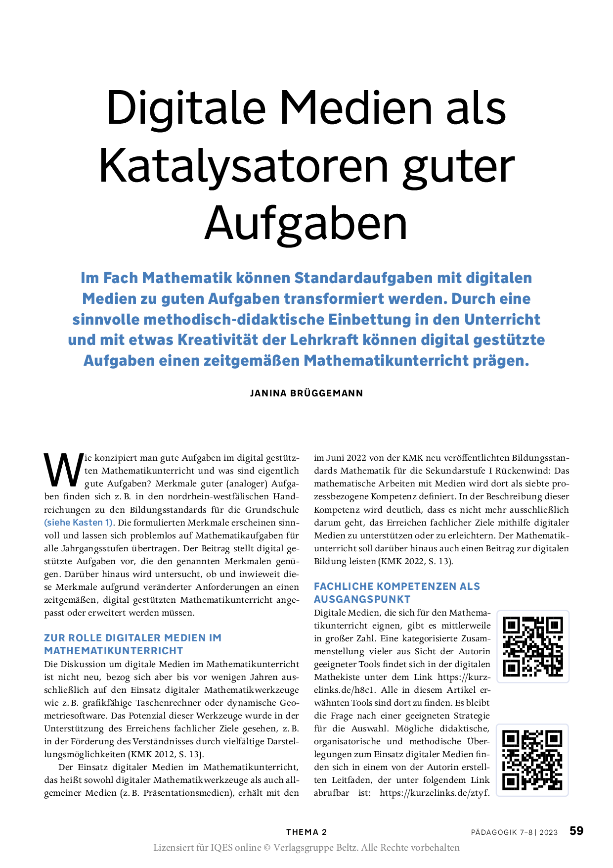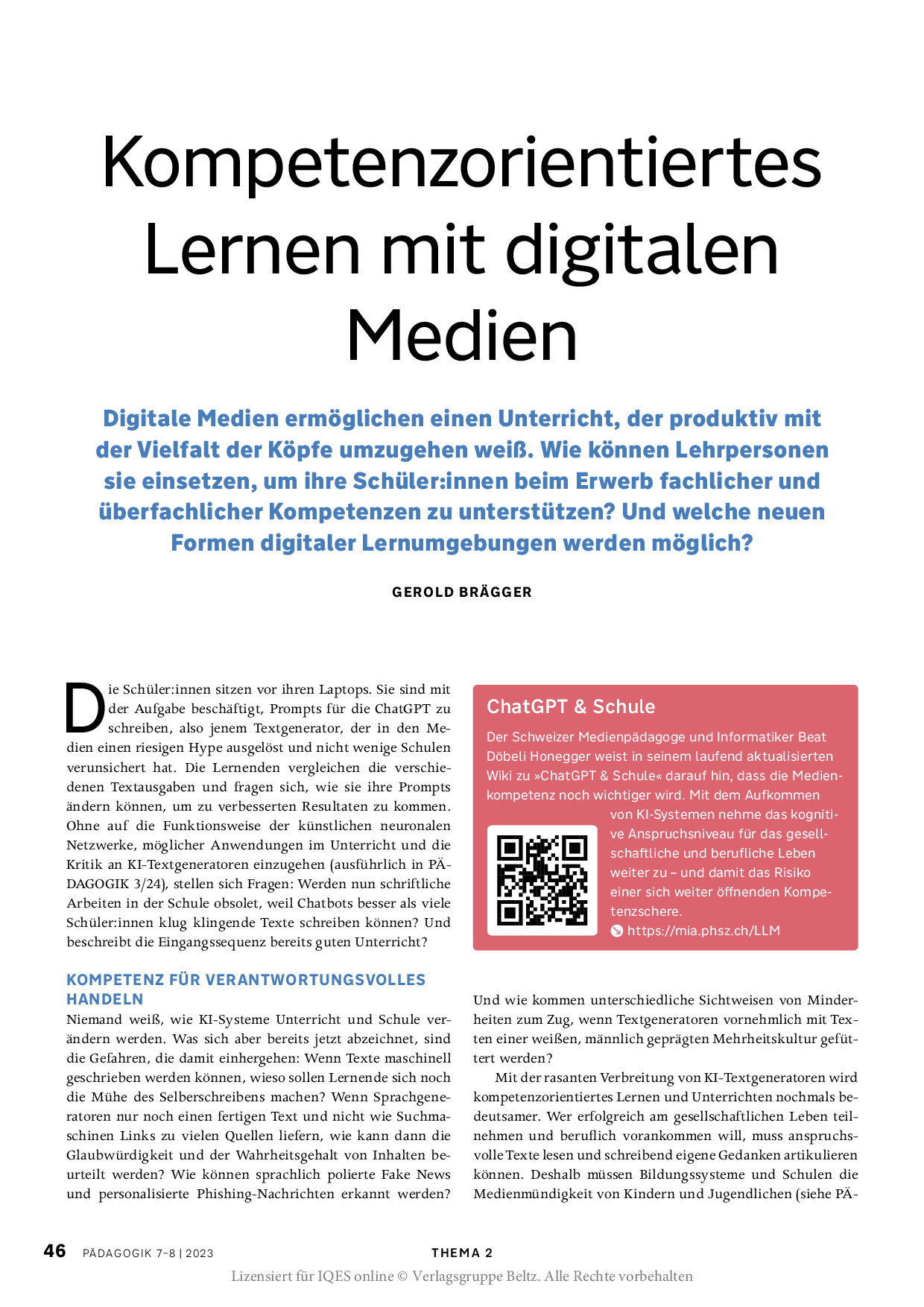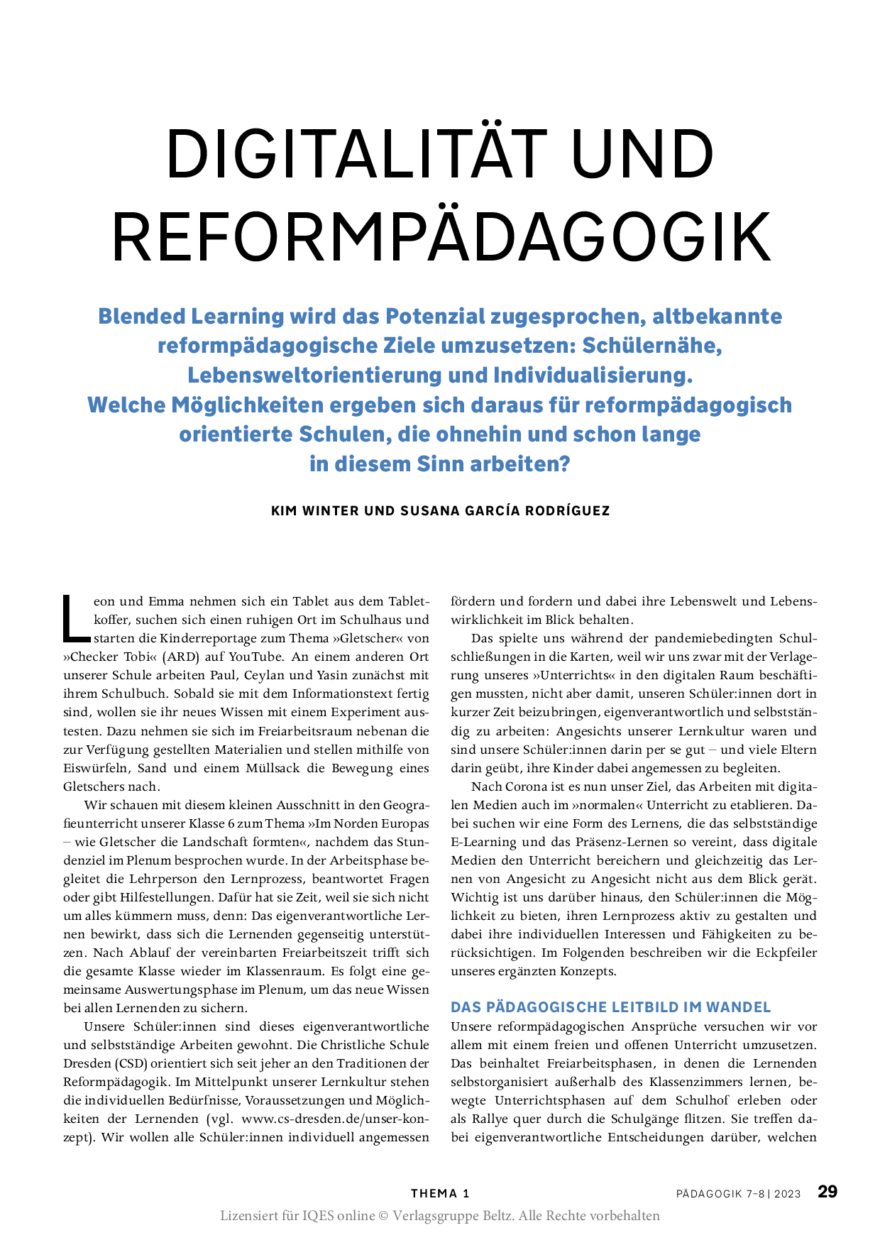 Herkunft: PÄDAGOGIK 07-08/23, Lizensiert für IQES online © Verlagsgruppe Beltz.