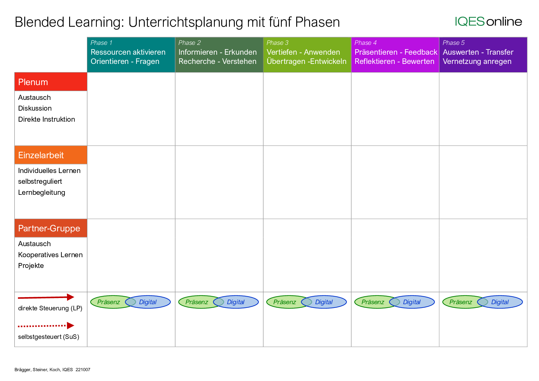 Planungsmatrix zu fünf Phasen eines Blended Learning-Unterichts