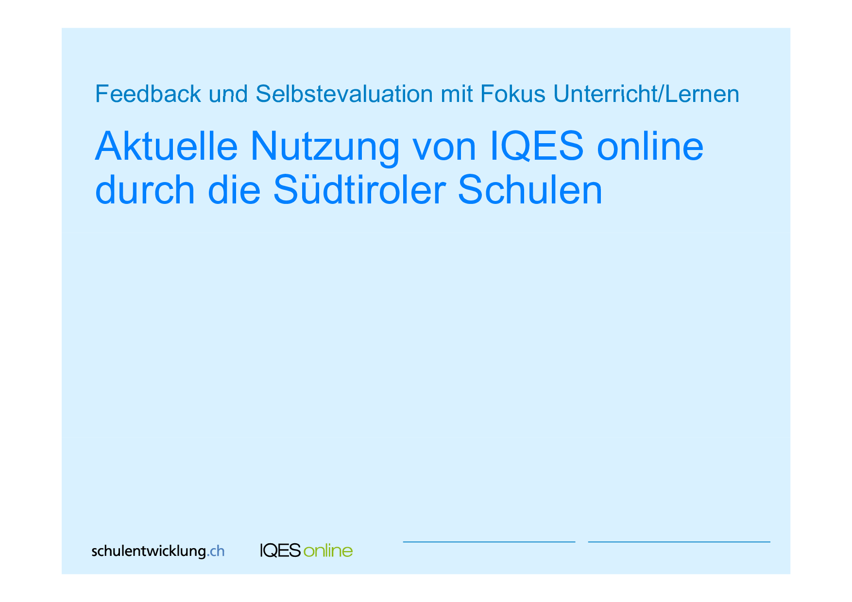 Eigenverantwortliches Lernen und Qualitätssicherung im Fokus. IQES online steht allen Kindergärten und Schulen in Südtirol kostenlos zur Verfügung. Die Nutzung ist freiwillig.