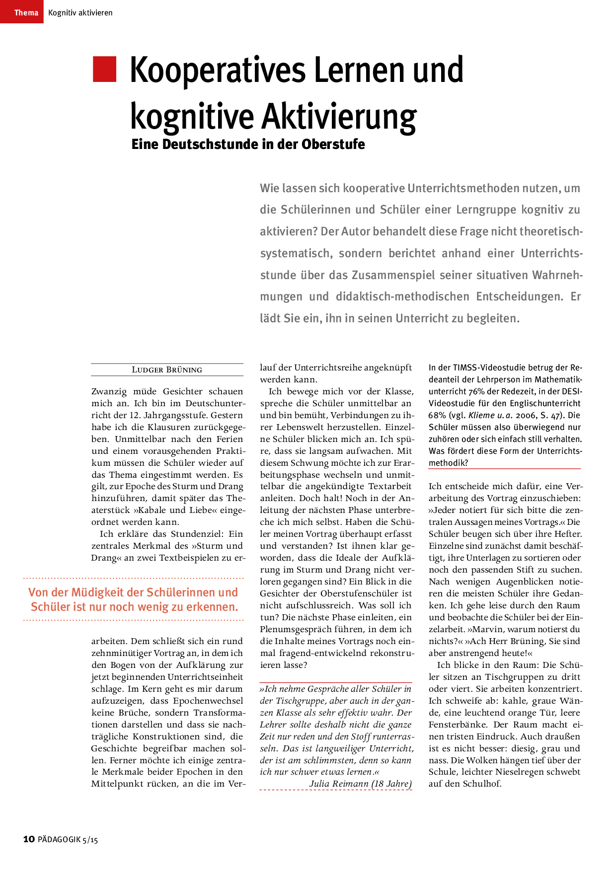 Kognitiv aktivieren: Artikel aus der Zeitschrift PÄDAGOGIK 5/15