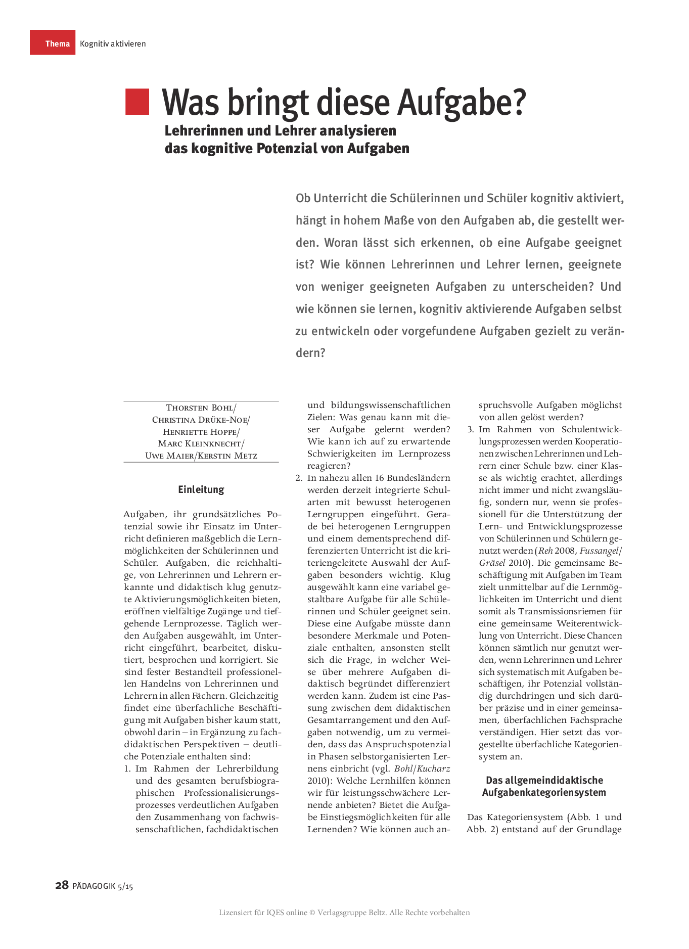 Herkunft: PÄDAGOGIK 5/15, lizensiert für IQES online © Verlagsgruppe Beltz