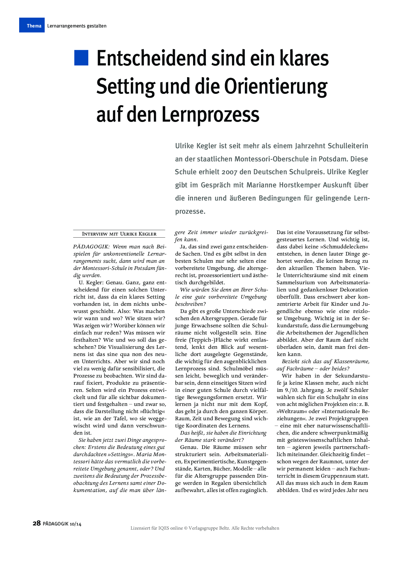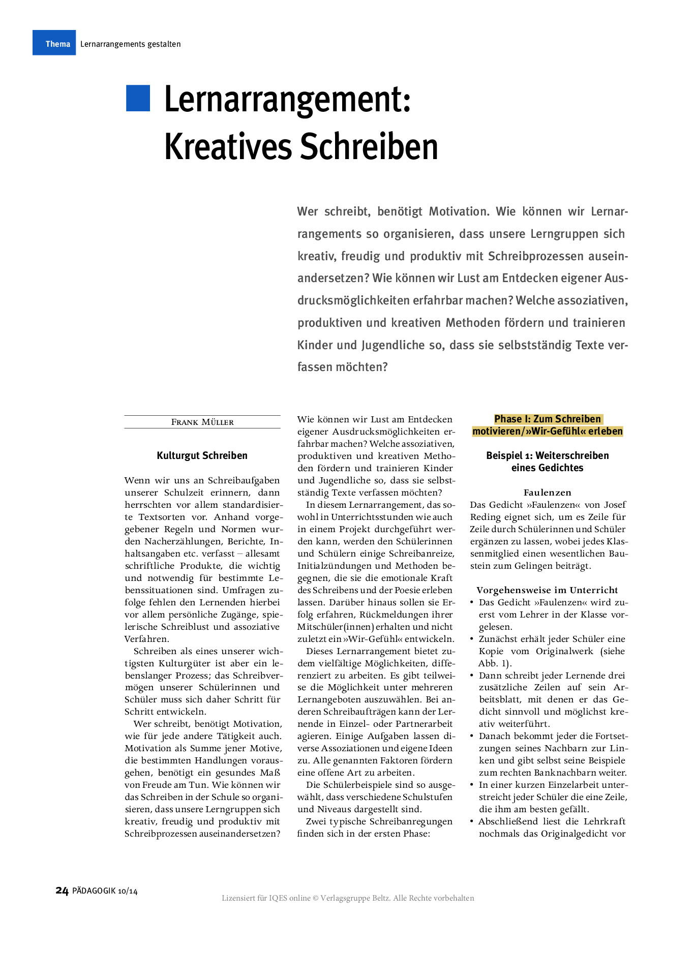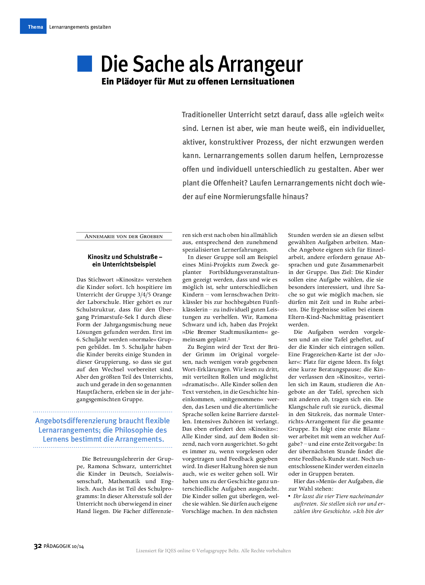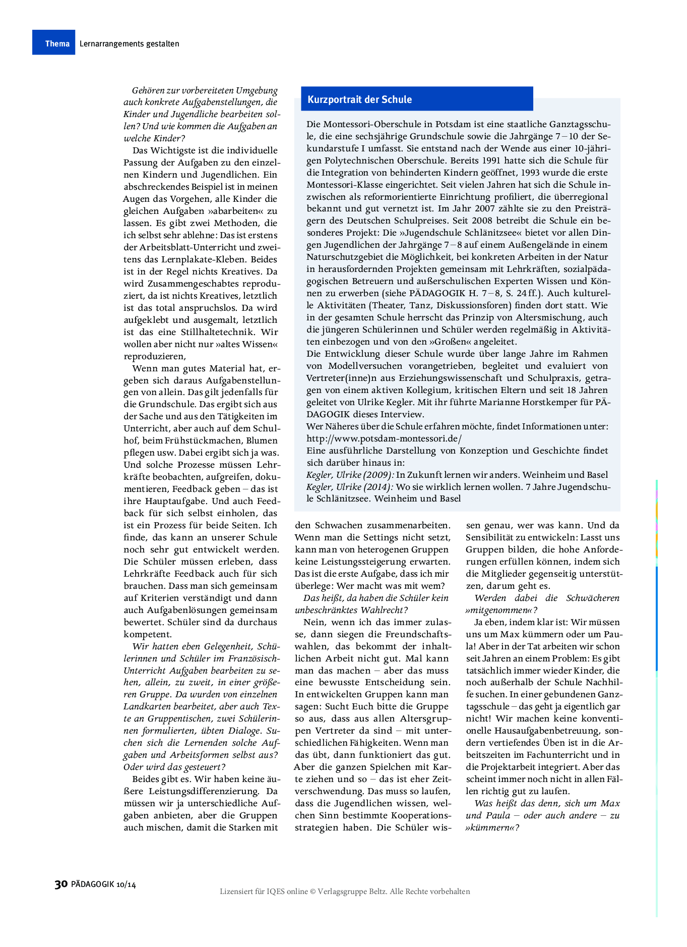 Herkunft: PÄDAGOGIK 10/14, lizensiert für IQES online © Verlagsgruppe Beltz.
