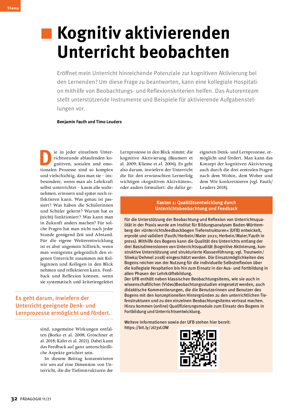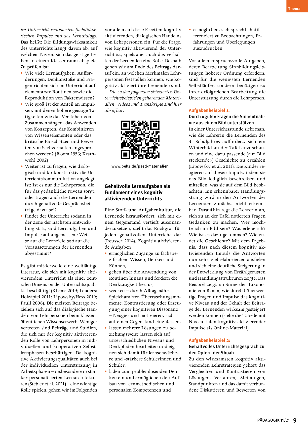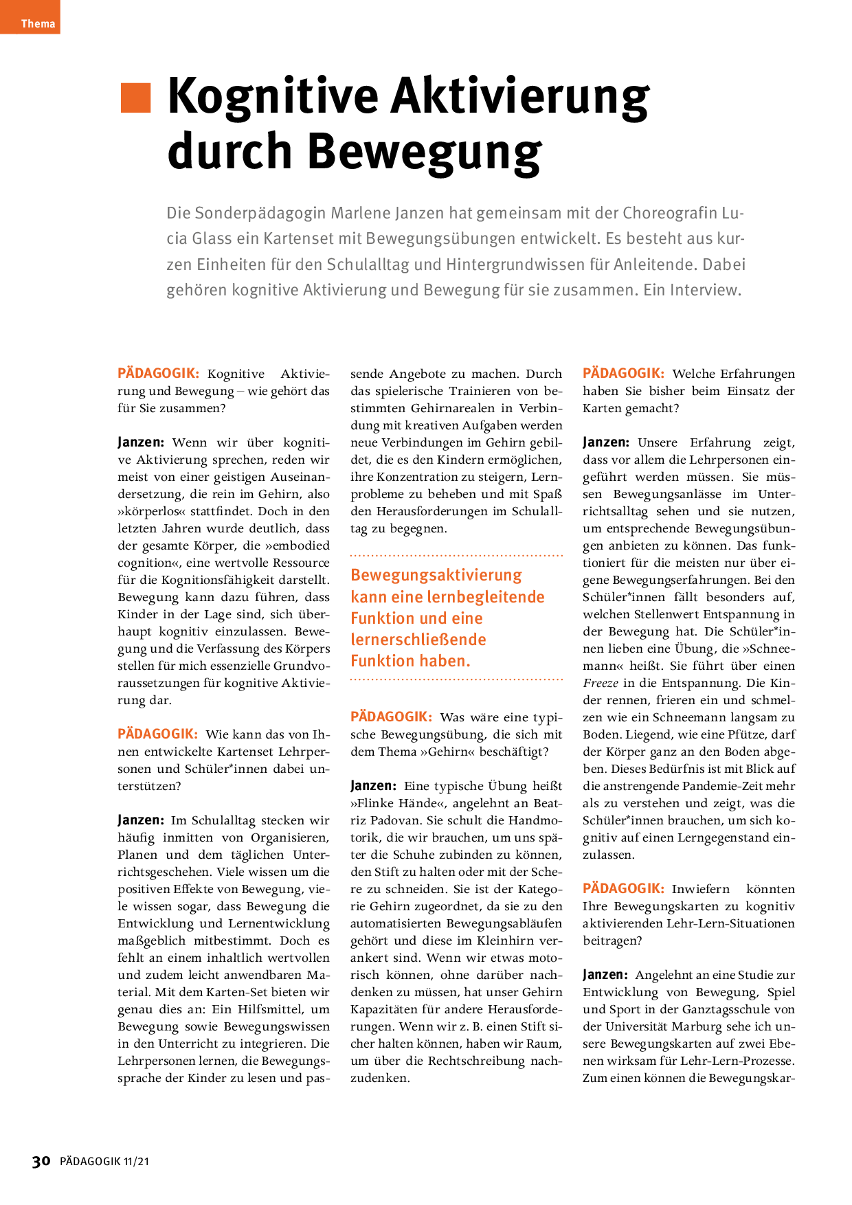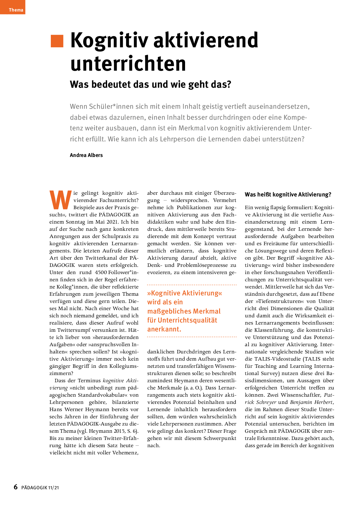 Koginitv aktivieren: Artikel aus der Zeitschrift PÄDAGOGIK 11/21