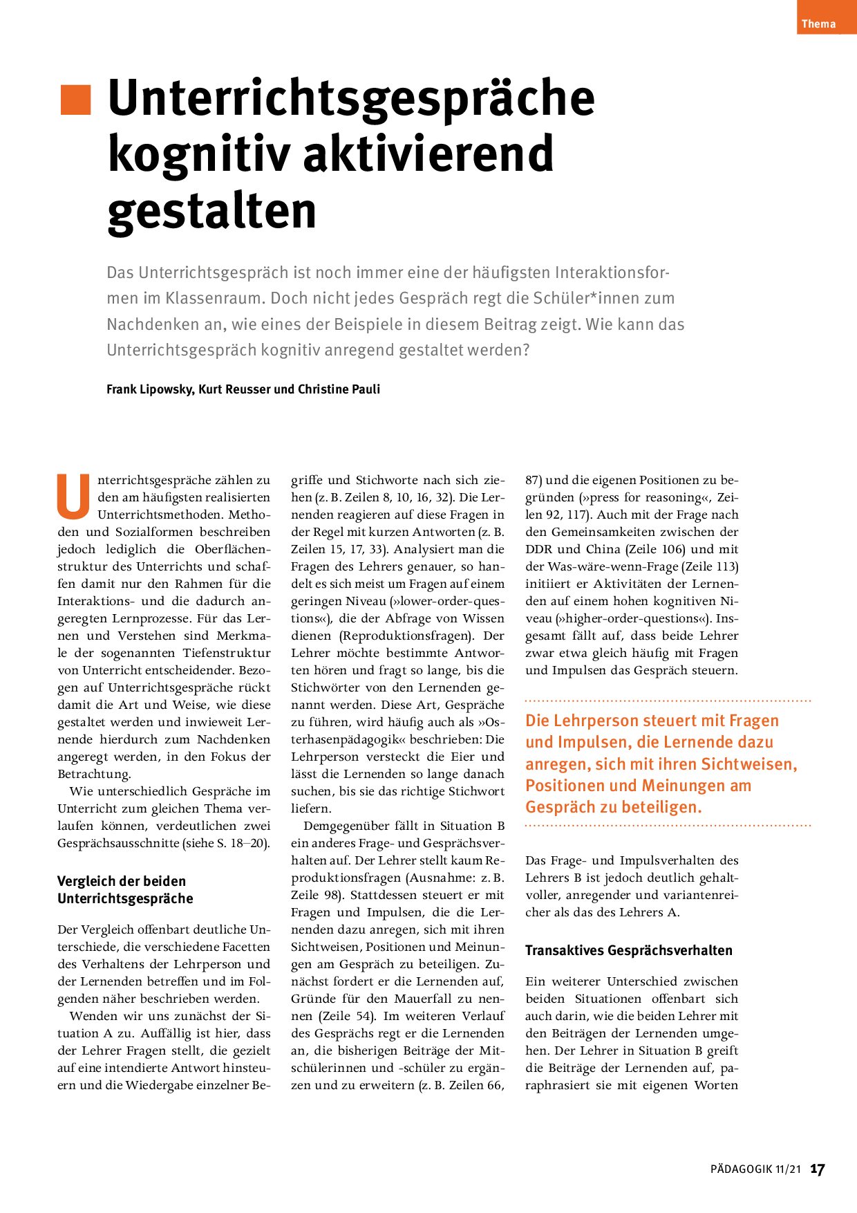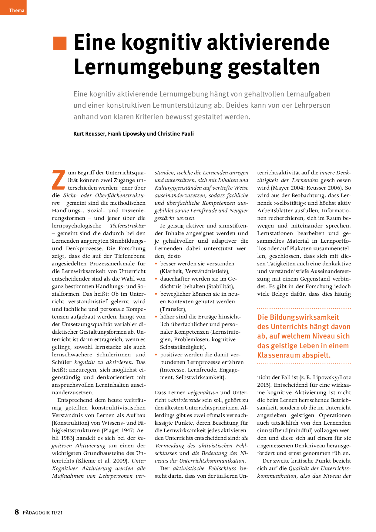 Autor/Autorin: Christine Pauli, Frank Lipowsky, Kurt Reusser