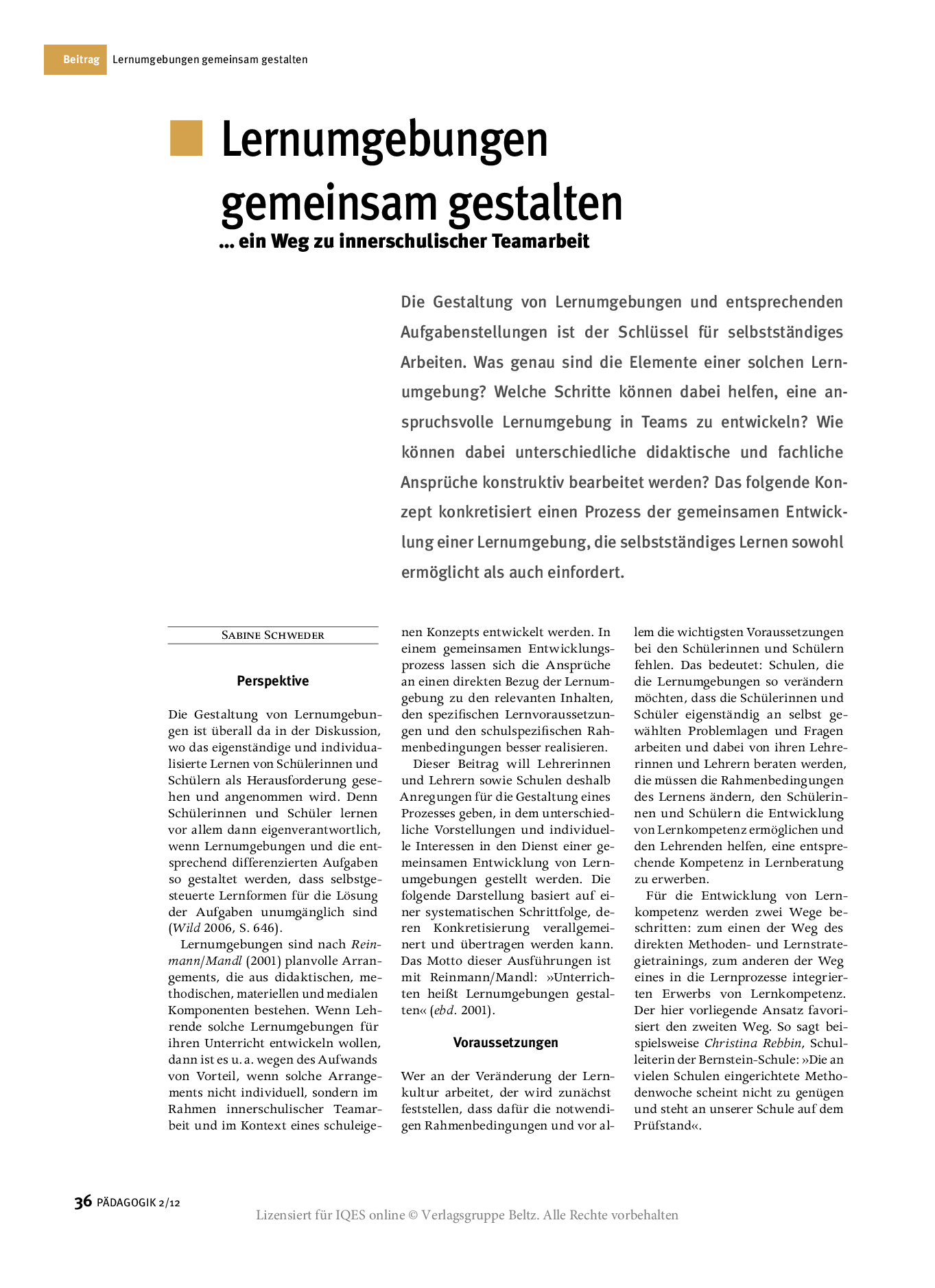 Herkunft: PÄDAGOGIK 2/12, lizensiert für IQES online © Verlagsgruppe Beltz
