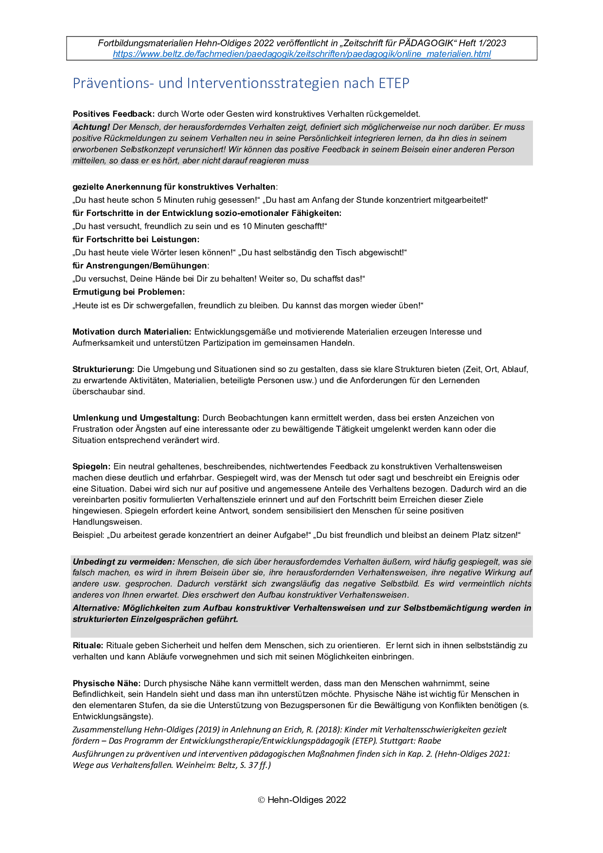 Präventions- und Interventionsstrategien nach ETEP