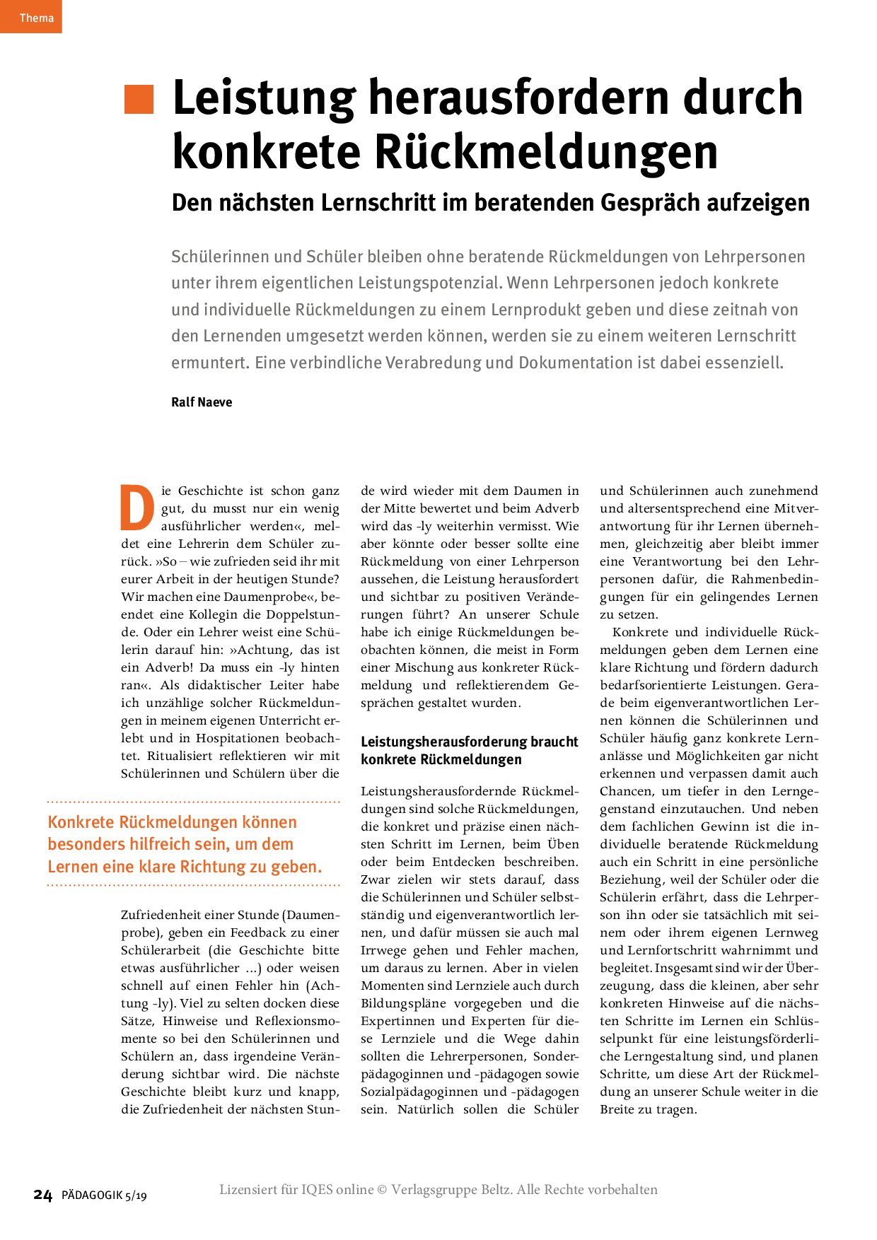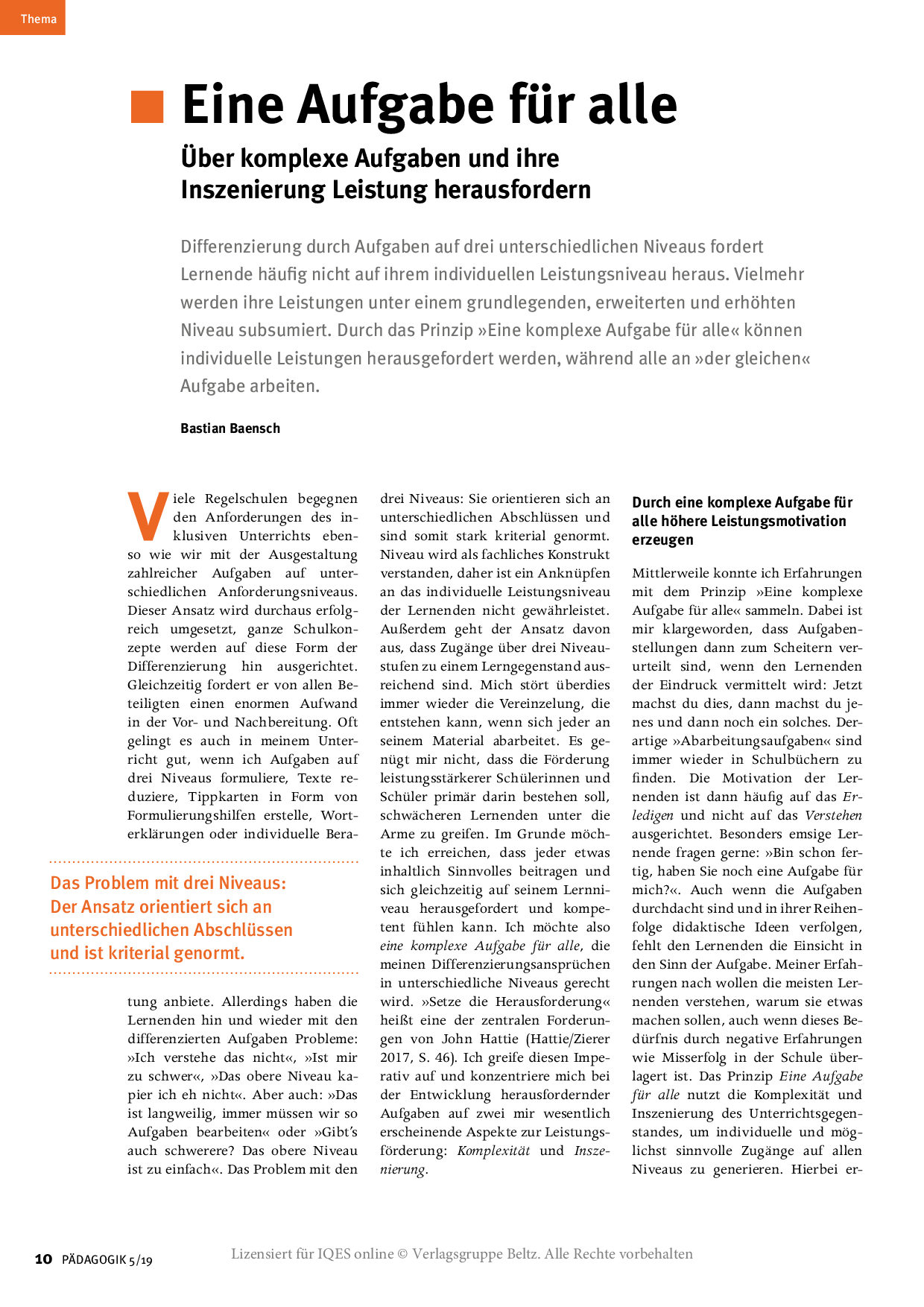 Herkunft: PÄDAGOGIK 5/19, Lizensiert für IQES online © Verlagsgruppe Beltz.