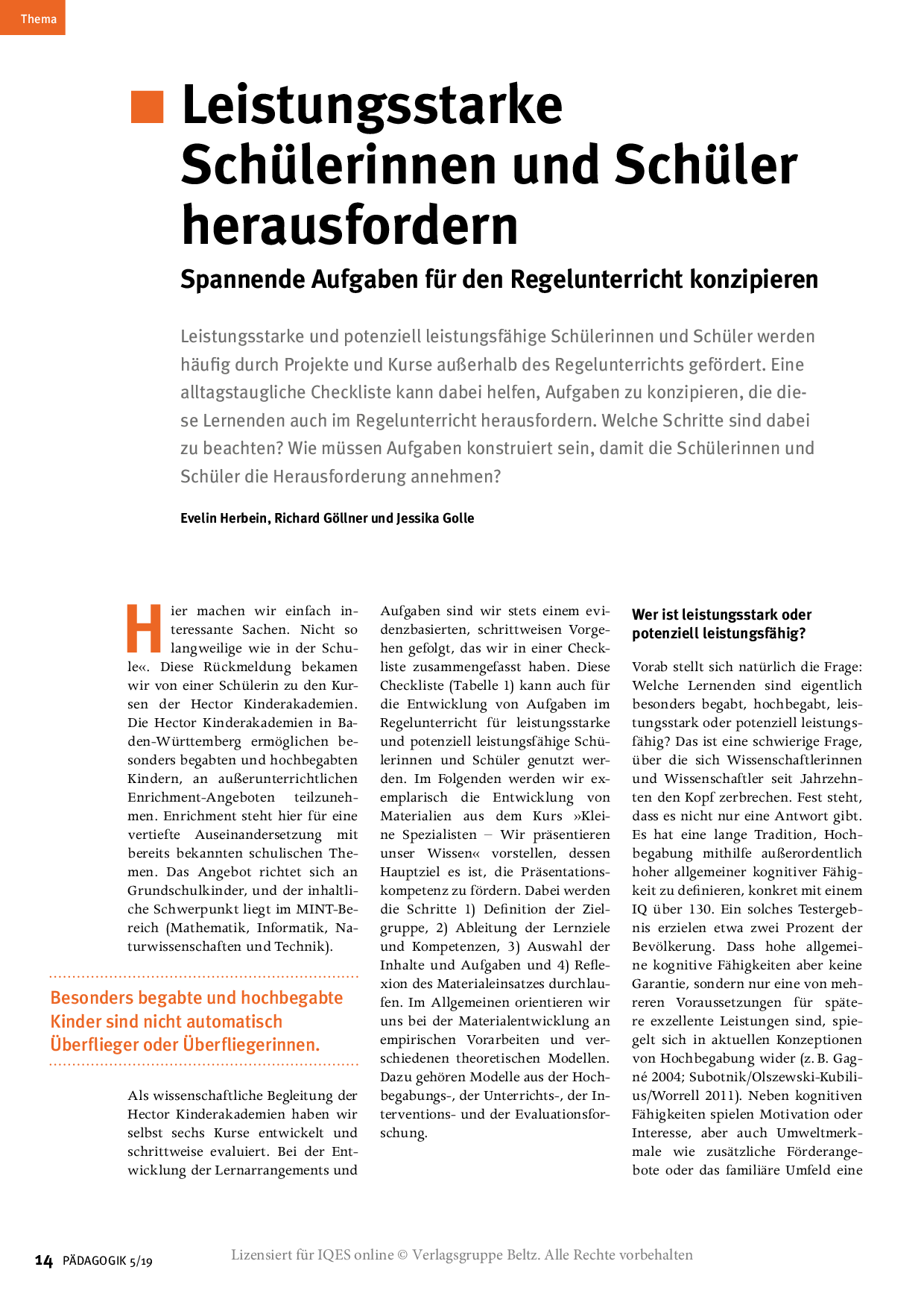 Quelle: Herbein, E., Göllner, R., Golle, J.: Leistungsstarke Schülerinnen und Schüler herausfordern. PÄDAGOGIK 5/19, S. 14-18
