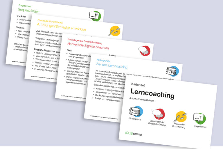 Beilharz, C. (2025). Lerncoaching: Kartenset für Lehrpersonen zur Gesprächsführung. https://www.iqesonline.net/unterrichten/formatives-feedback/lerncoaching-kartenset-lehrpersonen/.