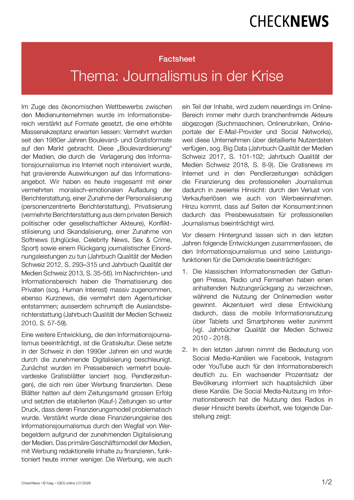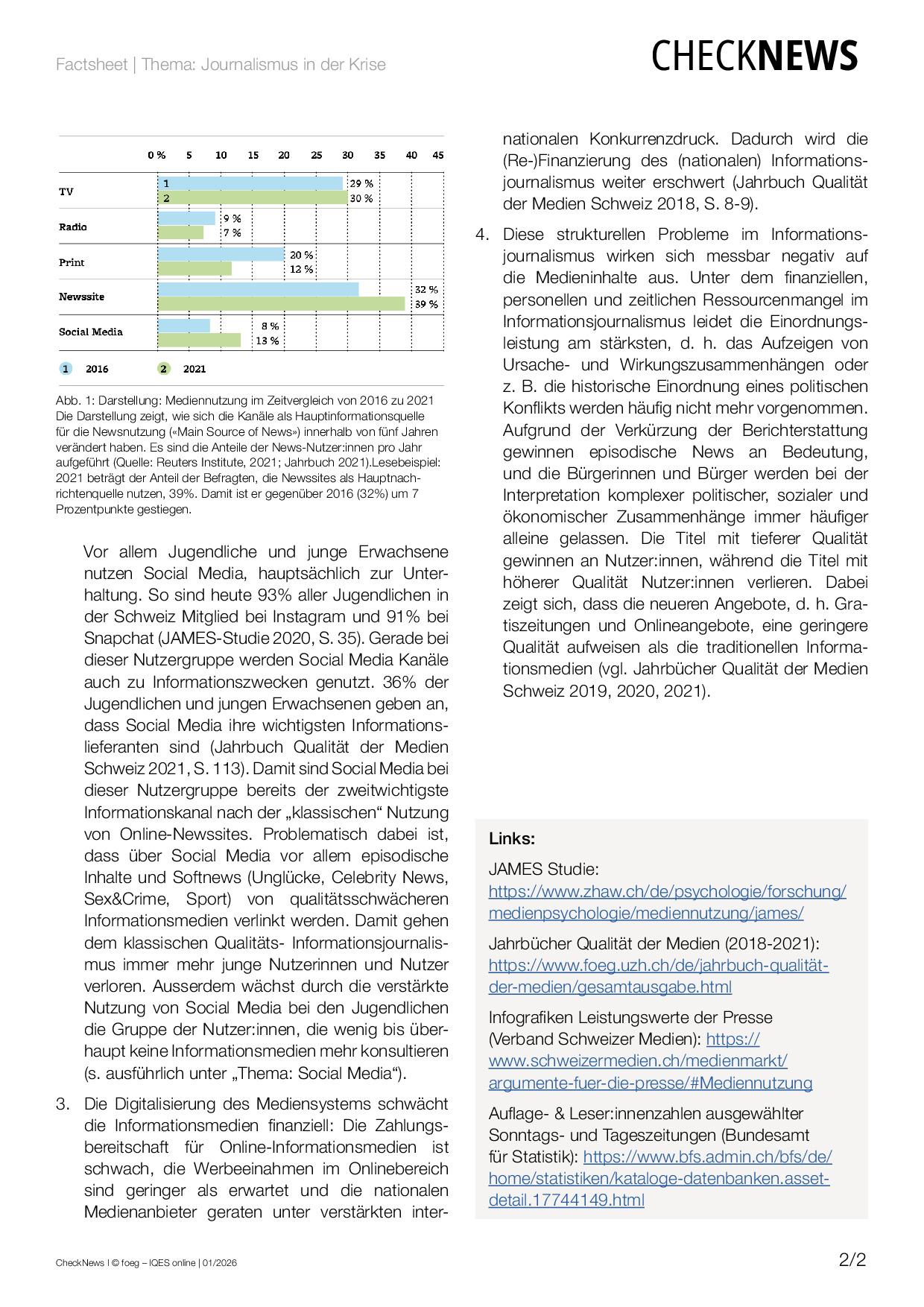 Medienlandschaft Schweiz – CheckNews Factsheet