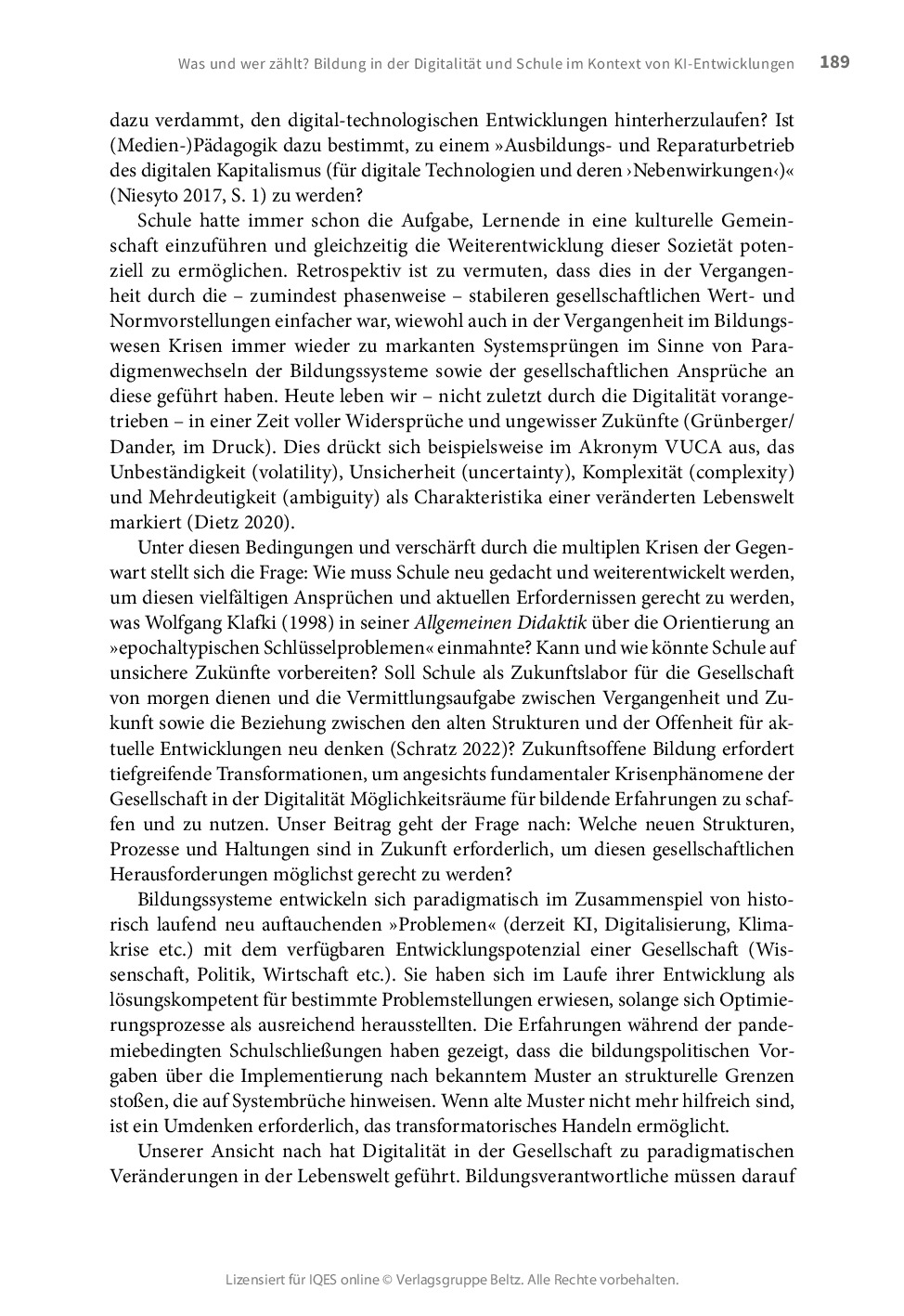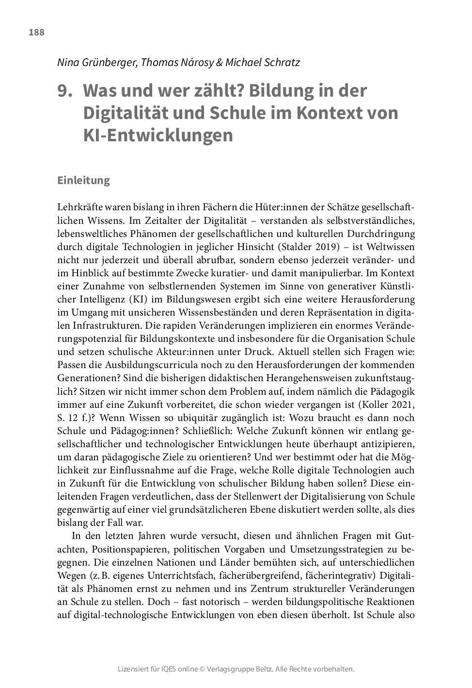 Was und wer zählt? Bildung in der Digitalität und Schule im Kontext von KI-Entwicklungen