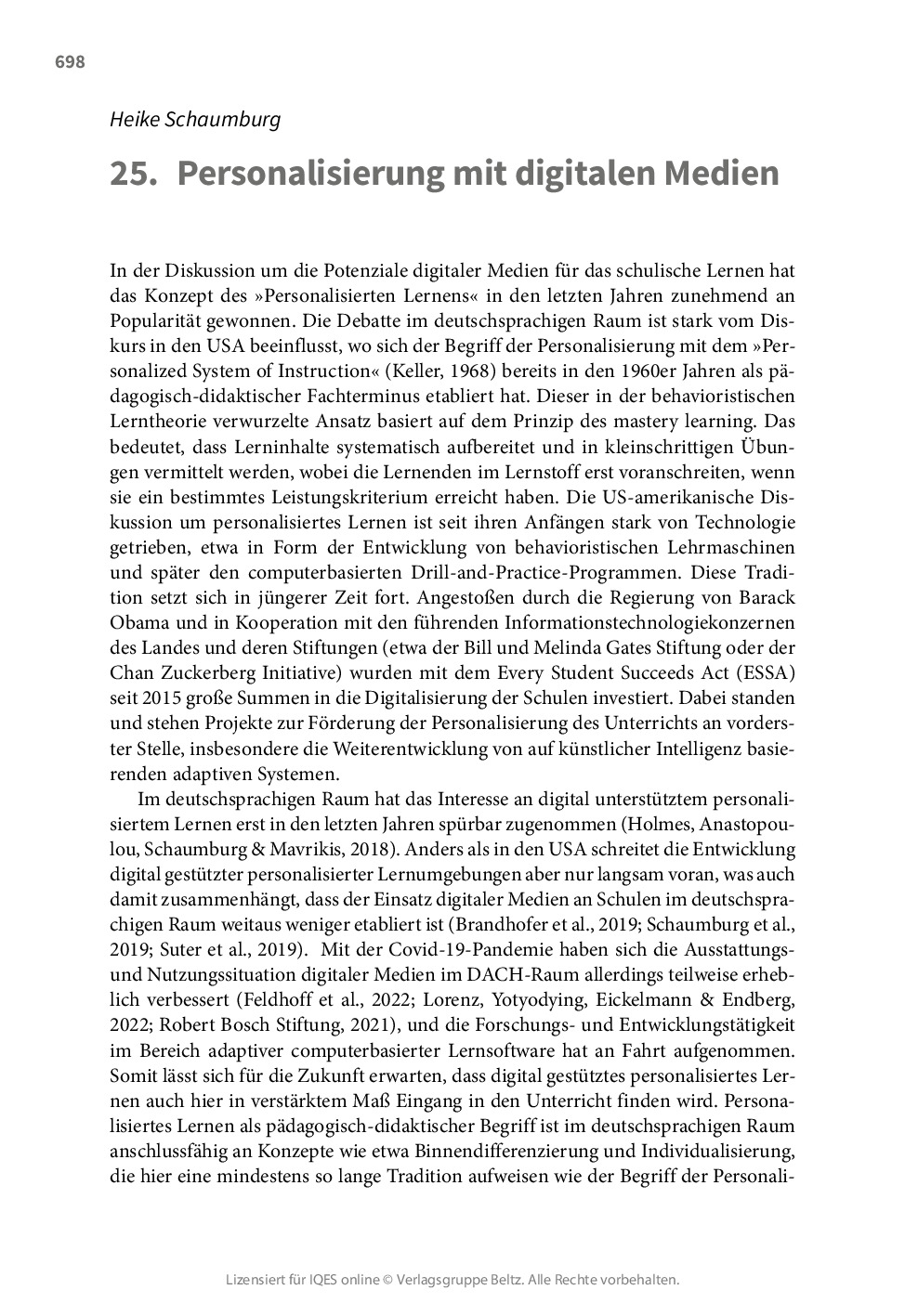 Die gesellschaftlichen Entwicklungen im Zuge der Digitalisierung stellen Schulen und Schulsysteme derzeit vor immer neue Herausforderungen. Während die Erprobung der Möglichkeiten, auch unter Nutzung der Potenziale digitaler Medien für das Lehren und Lernen, international schon seit mehreren Jahrzehnten diskutiert und auch wissenschaftlich untersucht wird, hat das Thema im deutschsprachigen Raum, vor allem in Deutschland, erst vergleichsweise spät an Fahrt aufgenommen. Der Beitrag beschreibt die »digitalen« Kompetenzen von Jugendlichen. Er gibt Antworten auf die Frage, welche Kompetenzen Lehrkräfte bei digital gestütztem Unterrichten brauchen, und er zeigt Perspektiven für die Entwicklung einer mediengestützten Lernkultur.