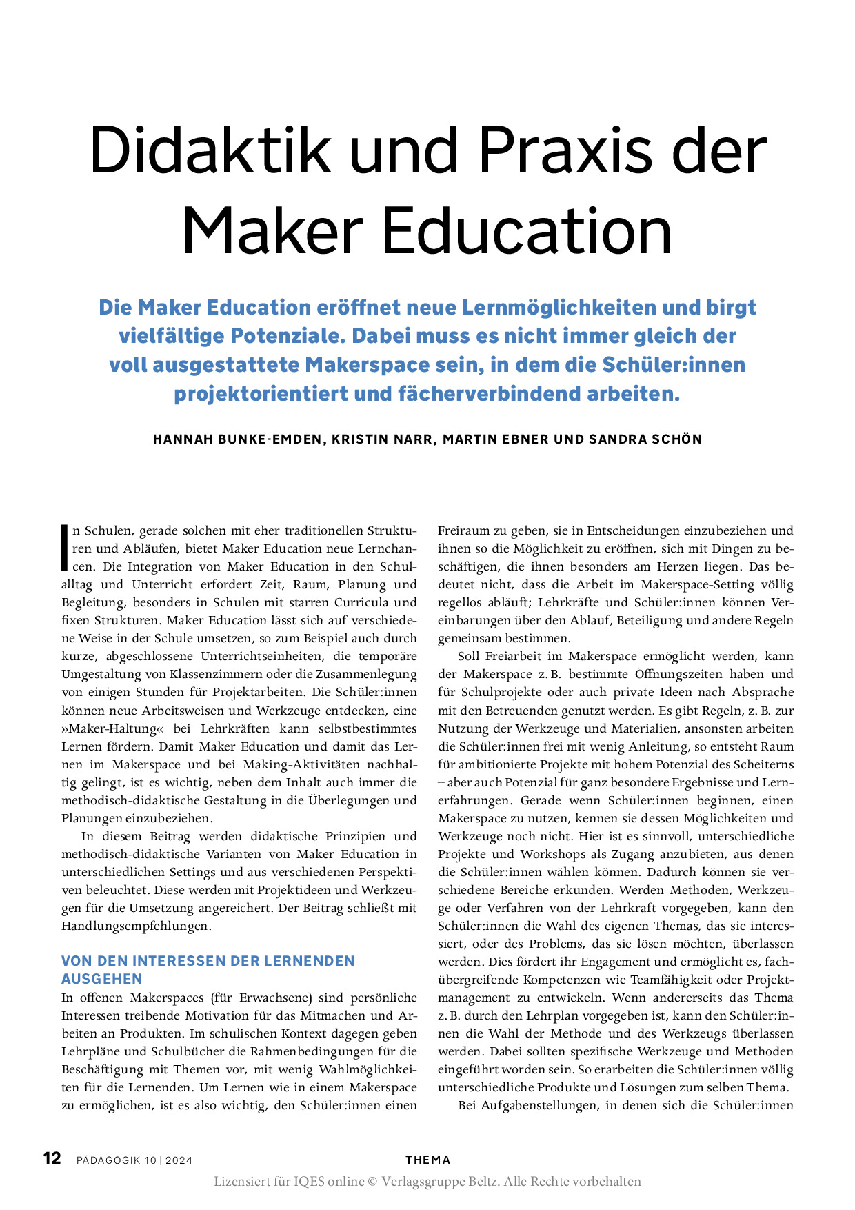 Hannah Bunke-Emden, Kristin Narr, Martin Ebner, und Sandra Schön, PÄDAGOGIK 10/24
