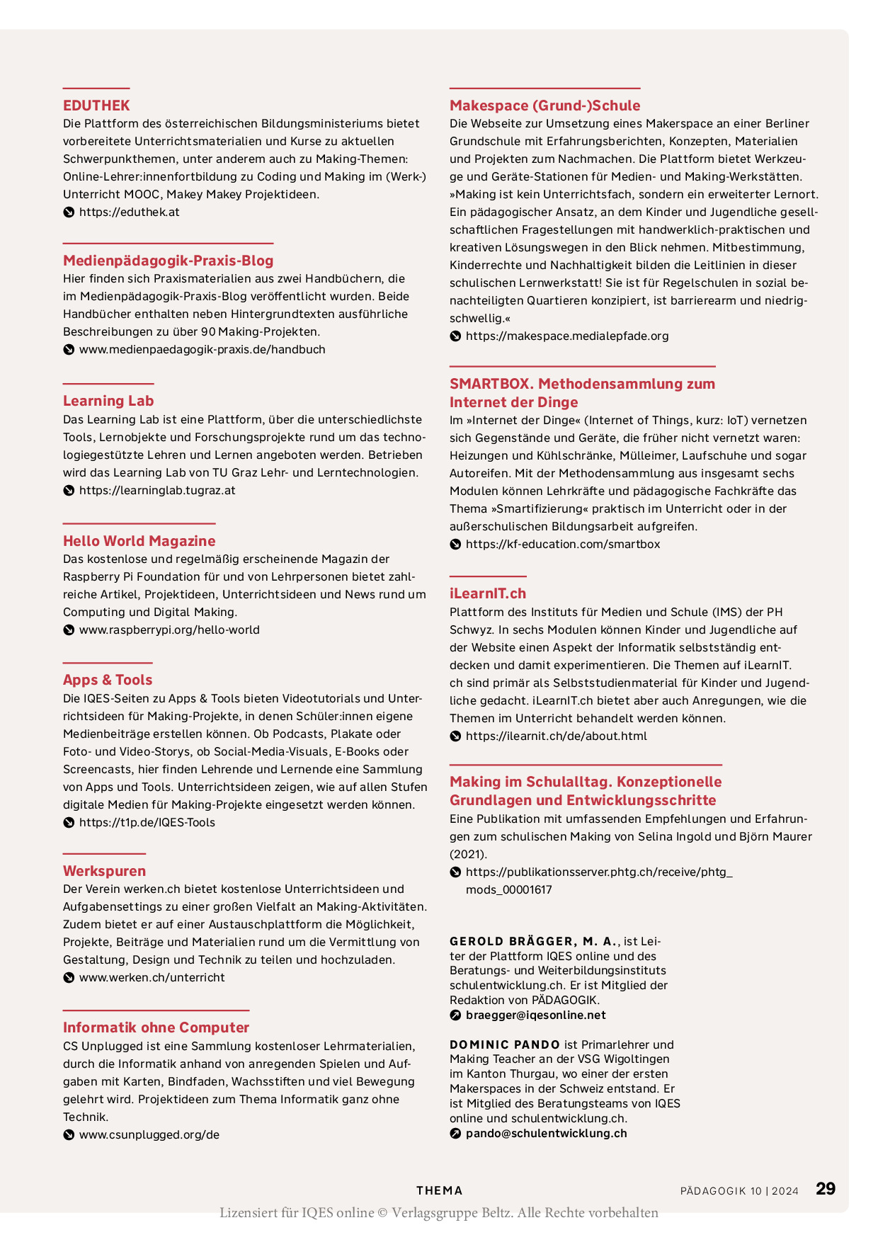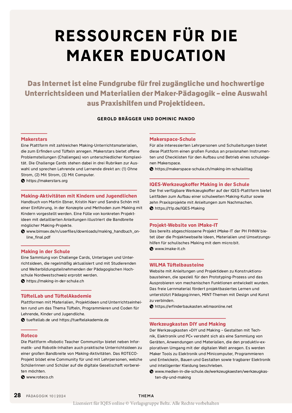 Das Internet ist eine Fundgrube für frei zugängliche und hochwertige Unterrichtsideen und Materialien der Maker-Pädagogik – eine Auswahl aus Praxishilfen und Projektideen.