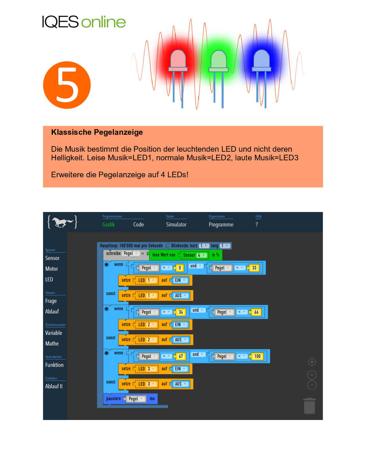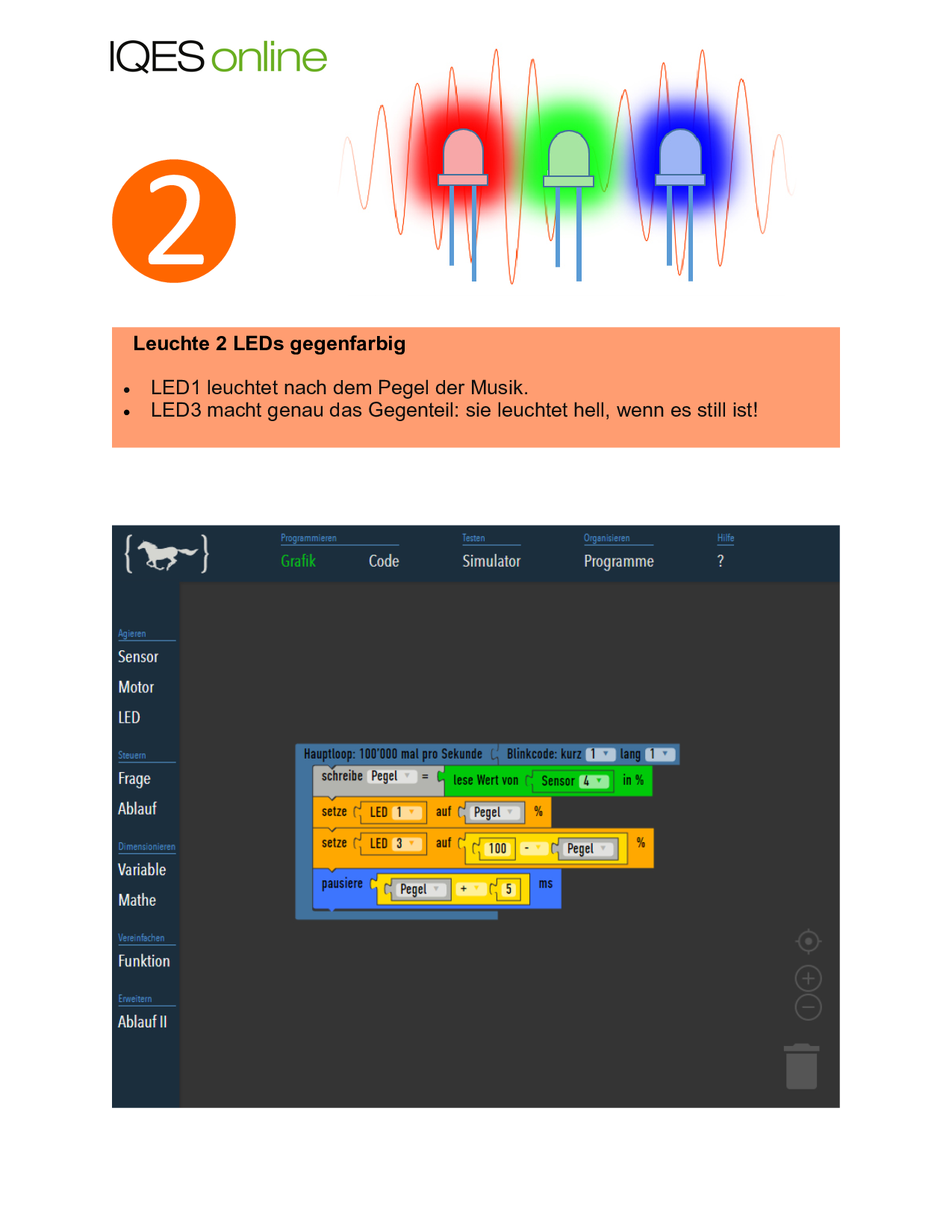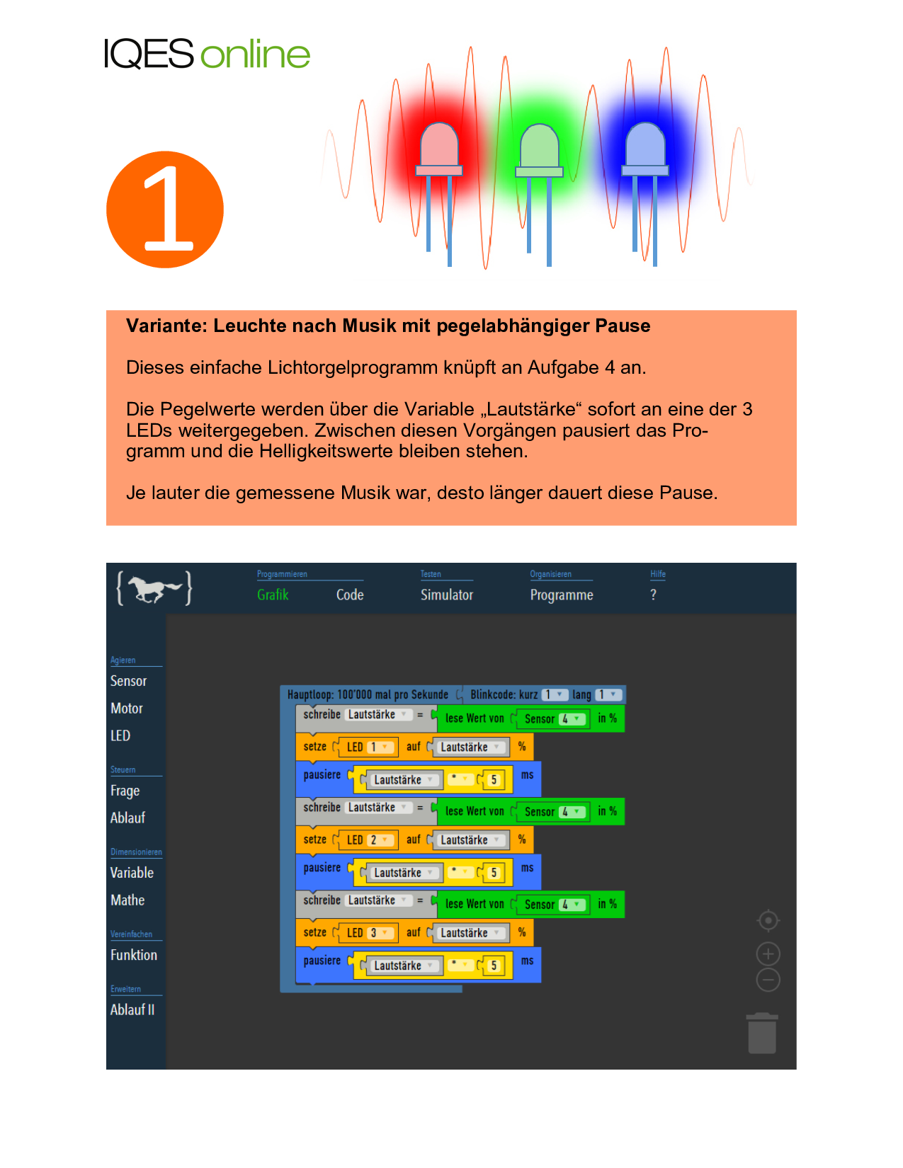 Aufgabe 1: Beschreibe die Funktion der digitalen Lichtorgel