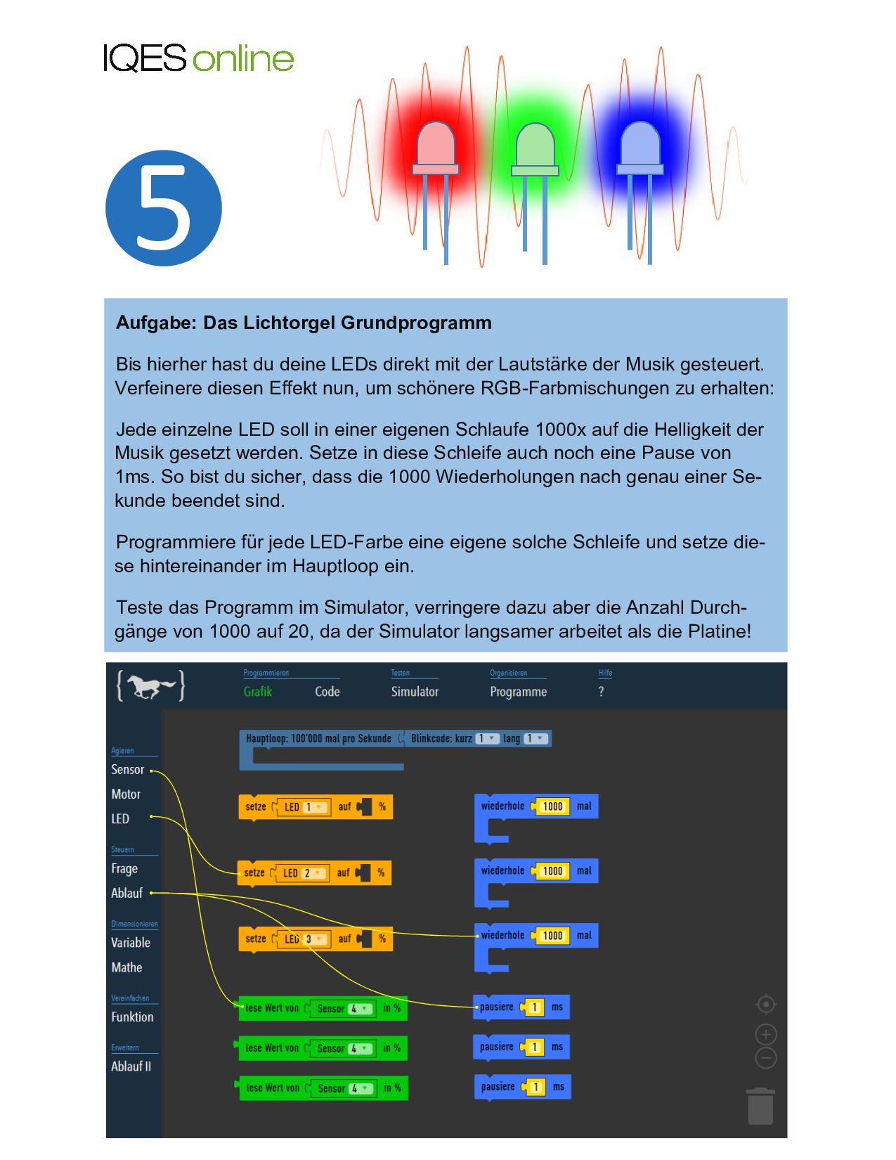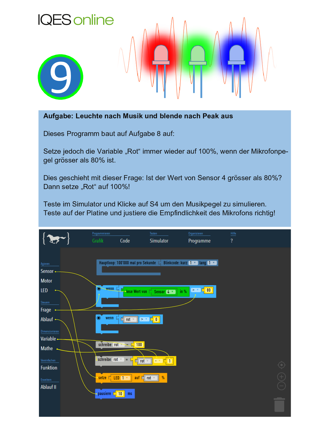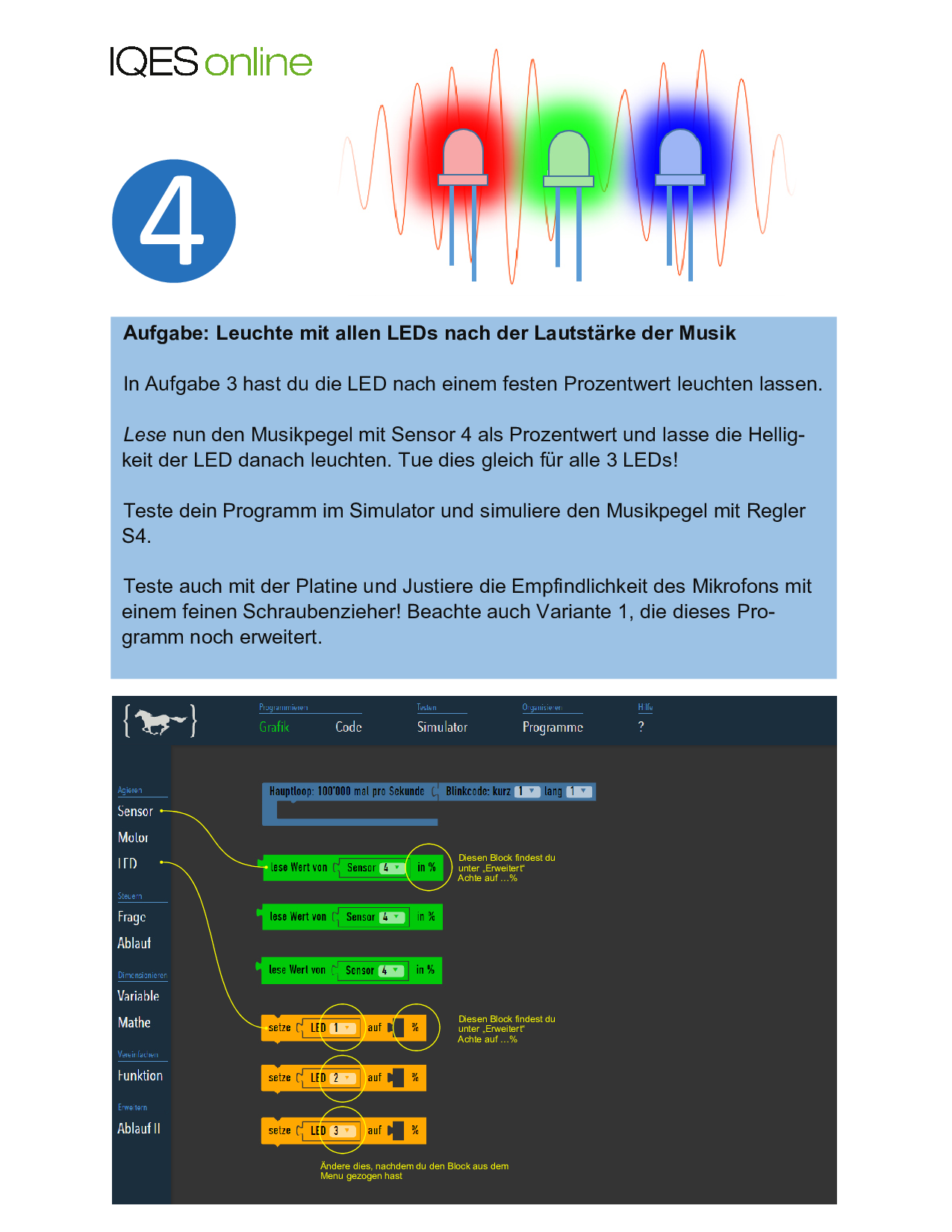 Aufgabe 1: Beschreibe die Funktion der digitalen Lichtorgel