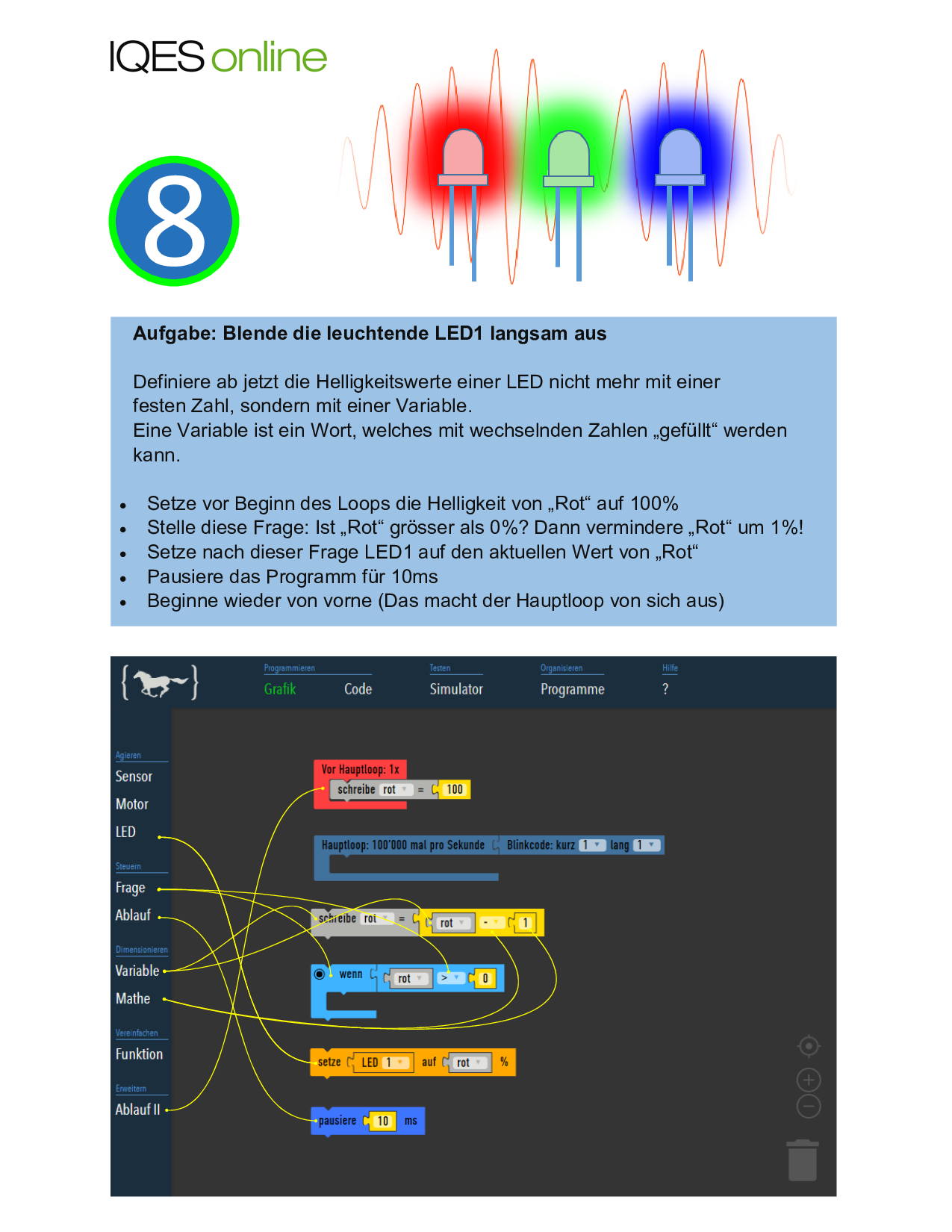 Aufgabe 10: zufallsfabiges Leuchten und Ausblenden