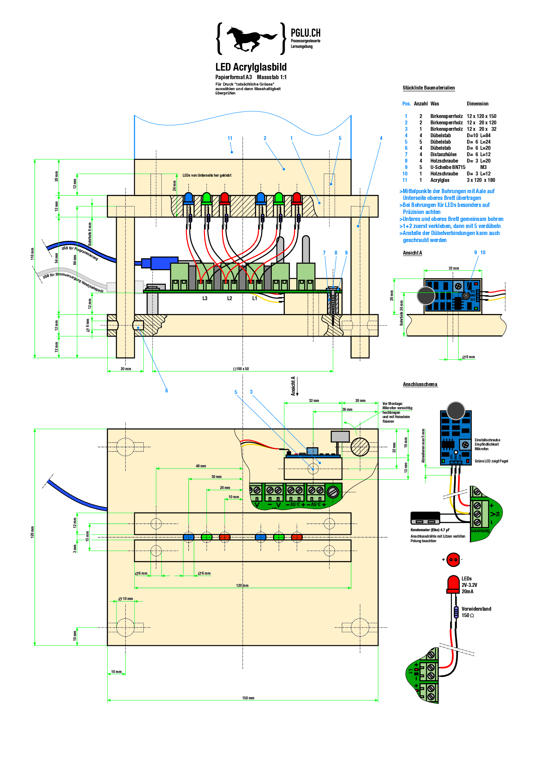 Bauplan im A3-Format zum Projekt «Lichtbild mit Musik»