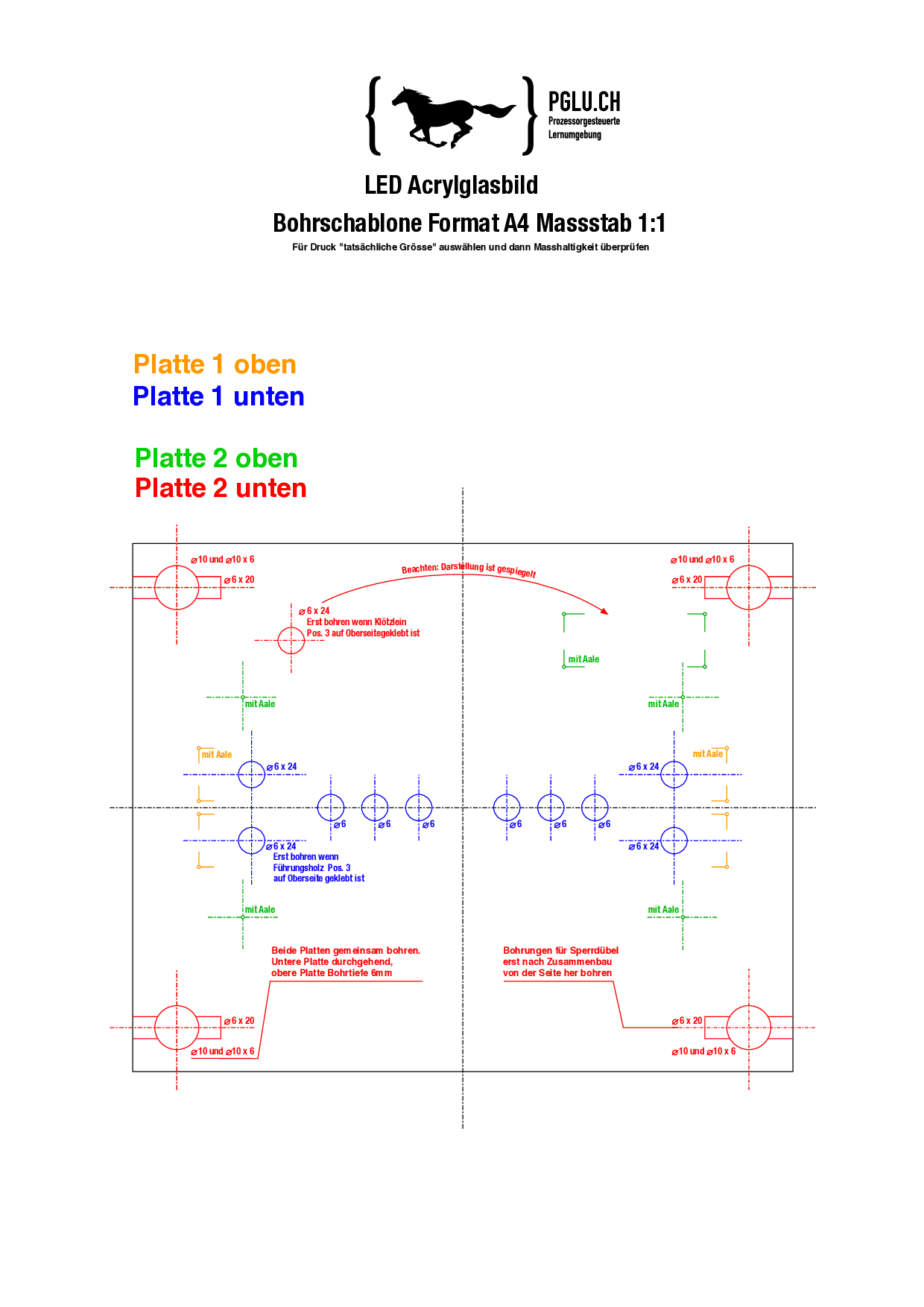 Bohrschablone im A4-Format zum Projekt «Lichtbild mit Musik»