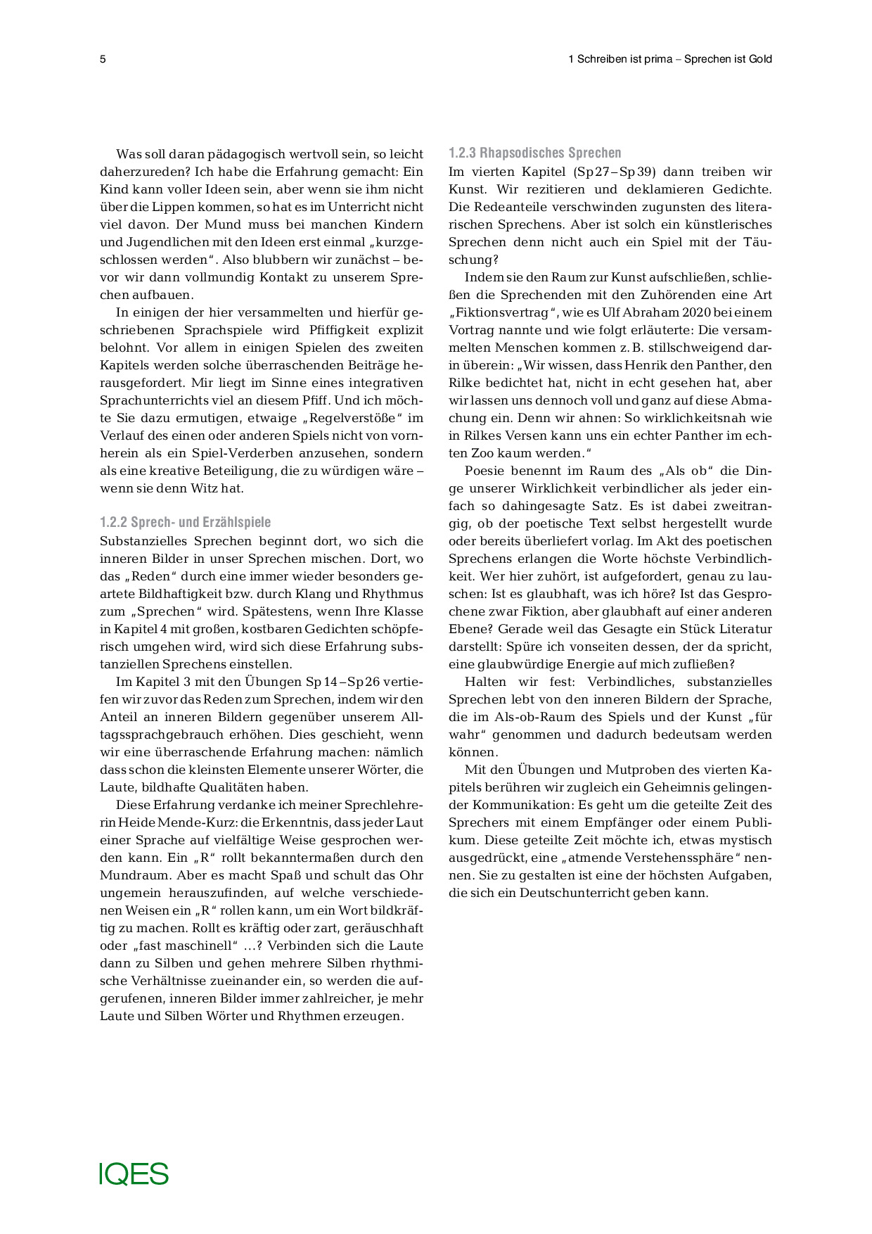 Die Lernchancen dieses Kapitels liegen in der Verbindung von Körper, Atem und Sprache. Die Schüler:innen entdecken, wie sie durch bewusste Artikulation und Gestaltung ihre Sprache ausdrucksstärker machen können und lernen, innere Bilder zu entwickeln und zu vermitteln.
