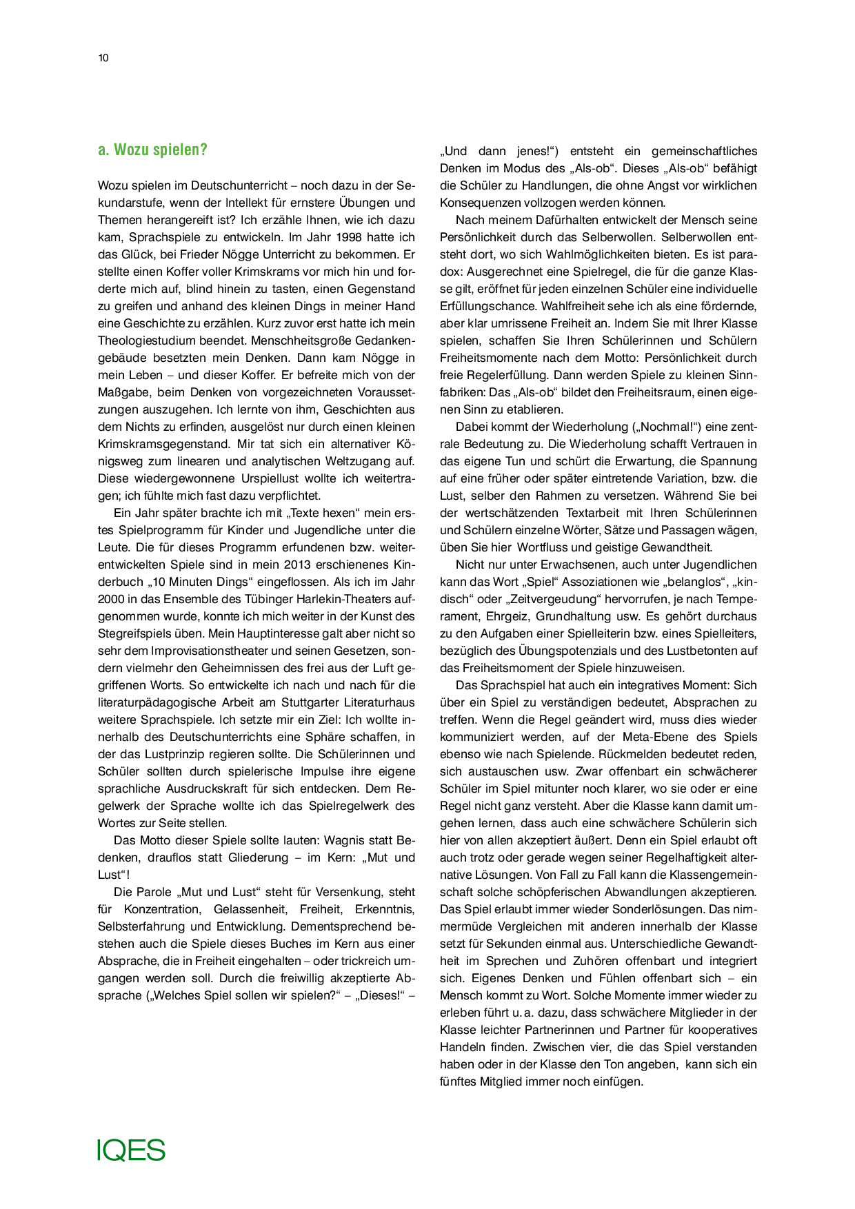 - Mit diesem Praxisband können Lehrer:innen ihren Deutschunterricht um eine spielerische, kreative Dimension erweitern und ihren Schülerinnen und Schülern neue Zugänge zur Welt der Sprache eröffnen.