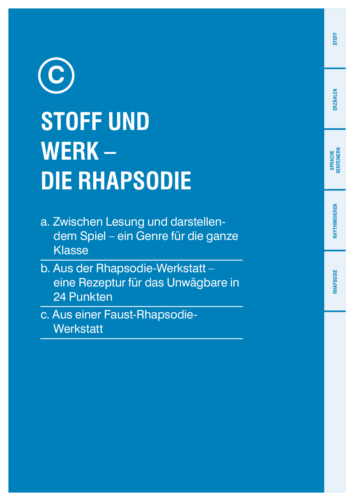 - detaillierten Anleitungen für die schrittweise Entwicklung einer Rhapsodie