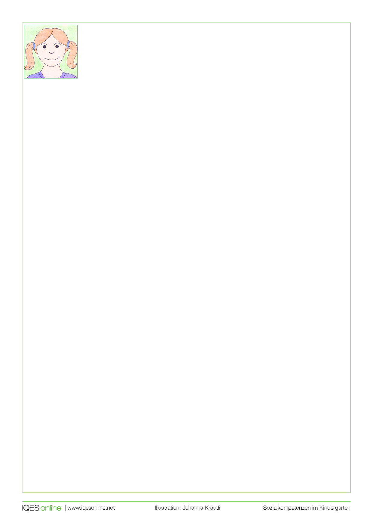 Die beiliegenden Illustrationen dienen der Förderung der Sozialkompetenz im Kindergarten. Die Zeichnungsvorlage zeigen verschiedene Gefühle eines Mädchens anhand eines Gesichts.