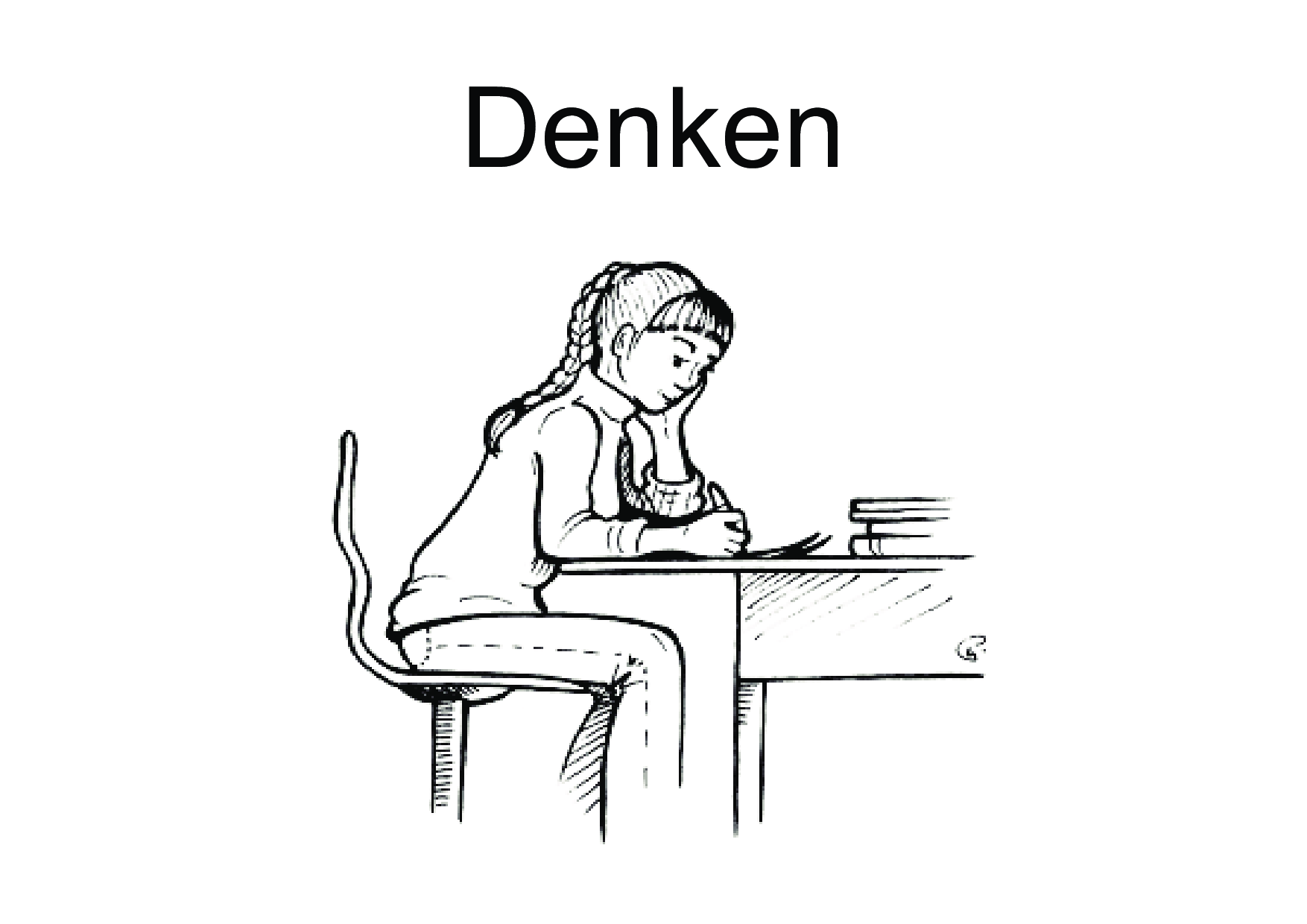 Illustrationen zu Sozialkompetenz im Kindergarten. Es werden die drei Vorgänge Denken, Austauschen, Vorstellen des Kooperativen Lernens in drei Bildern illustriert.