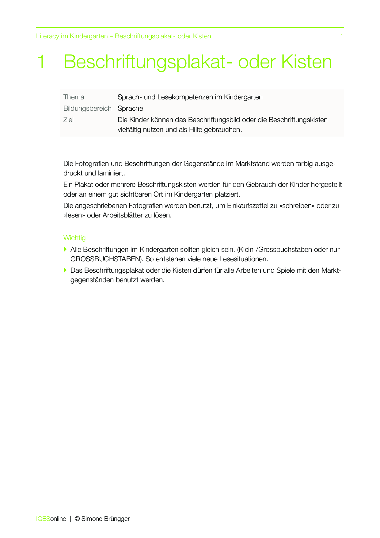 In diesem Dokument finden Sie Fotografien und Beschriftungen von Gegenständen im Marktstand zur Förderung von Sprach- und Lesekompetenz. Diese Art der Förderung von Sozialkompetenzen im Kindergarten wurde von einer Praxisexpertin für die Stufe Kindergarten/Grundstufe oder Basisstufe erarbeitet.