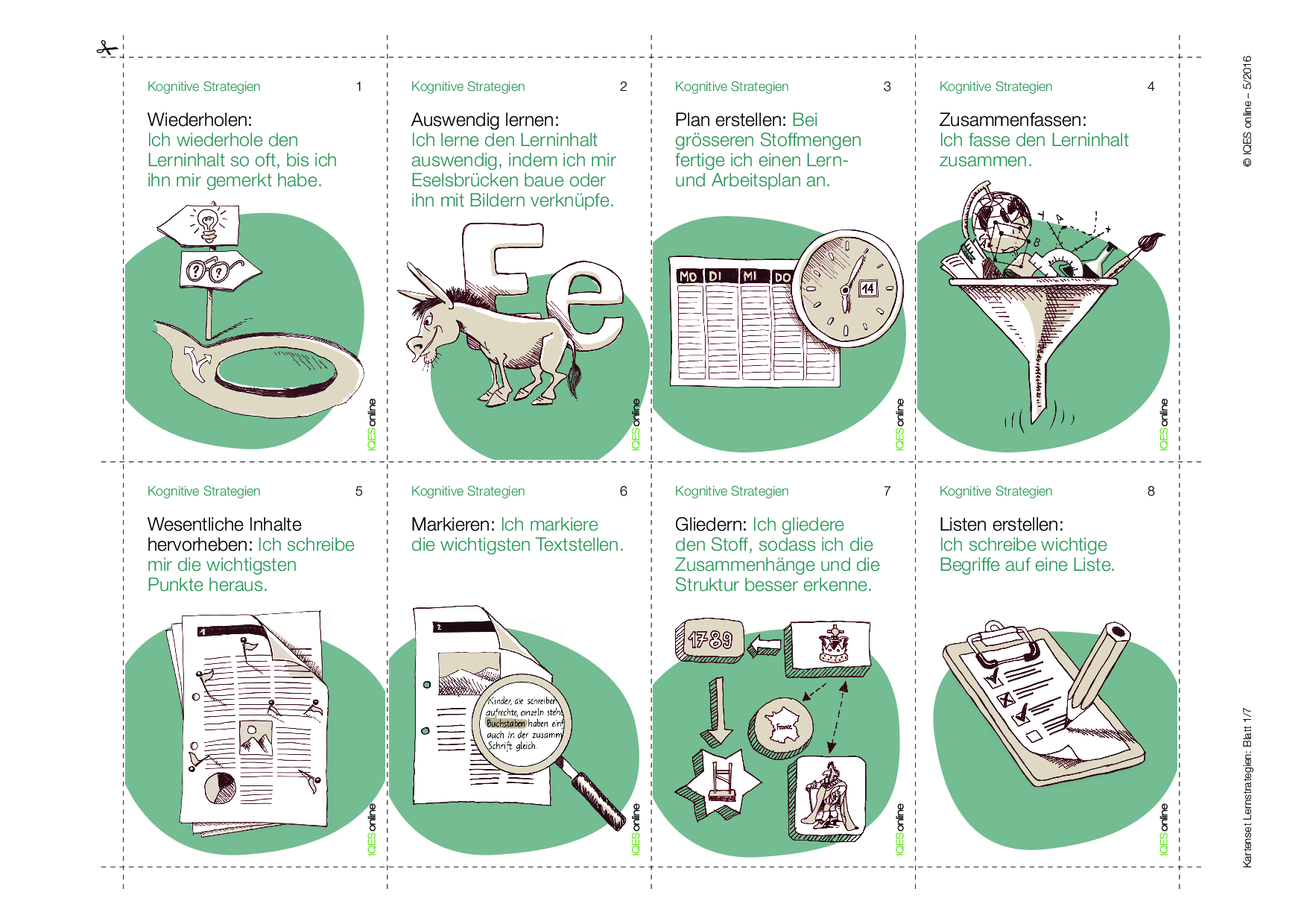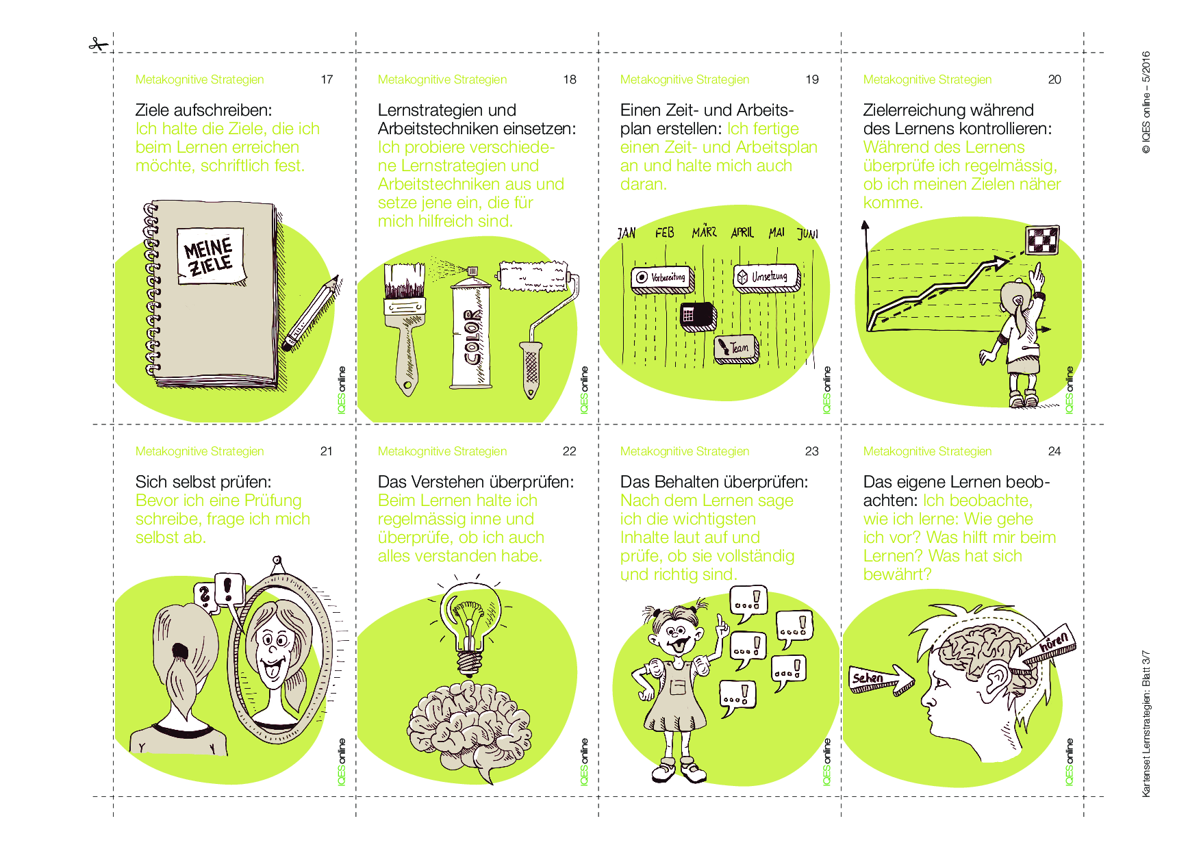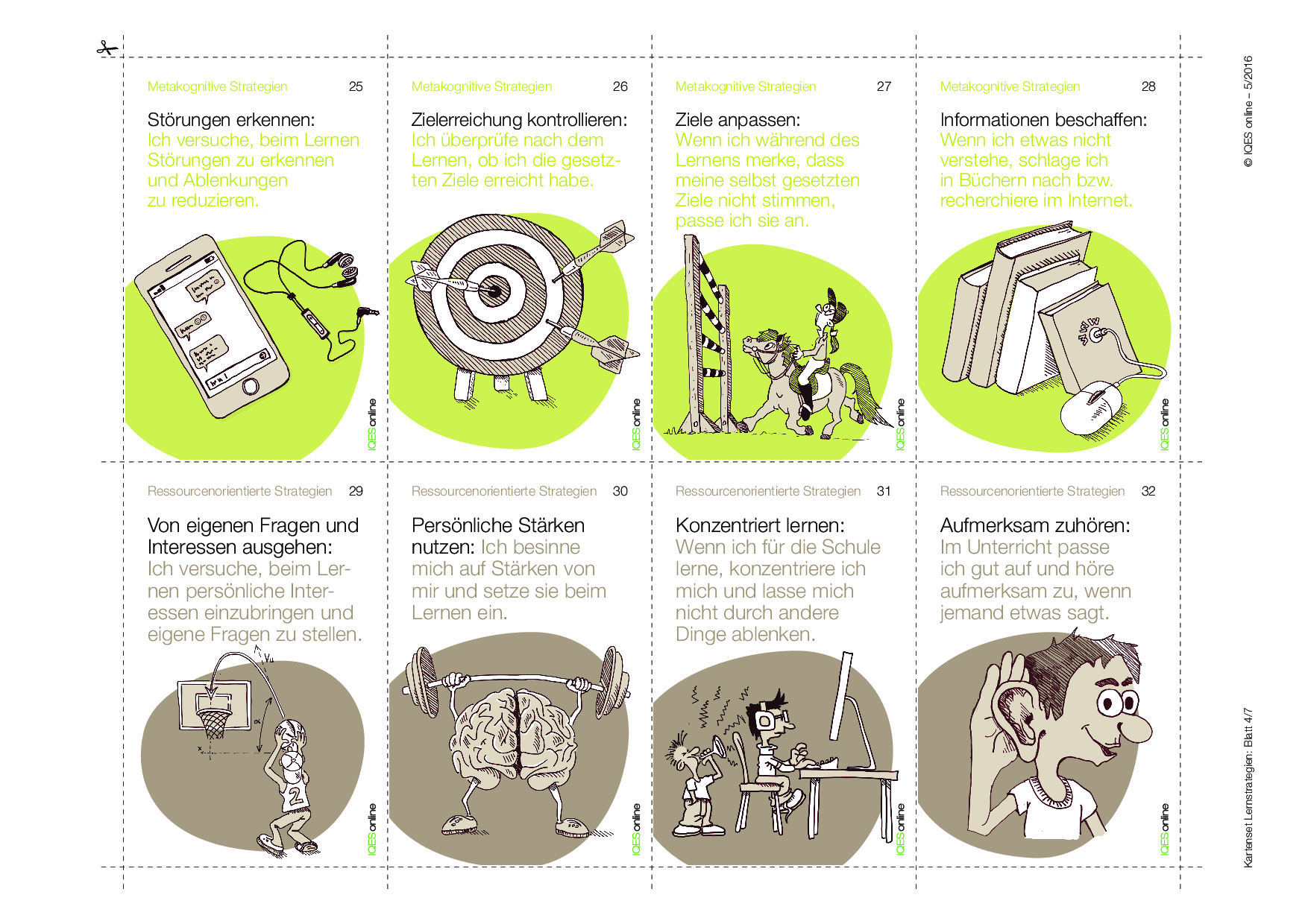 - Anleitung zur Selbstreflexion und Selbstregulierung des Lernens mit Hilfe der eingeführten Lernstrategie-Karten