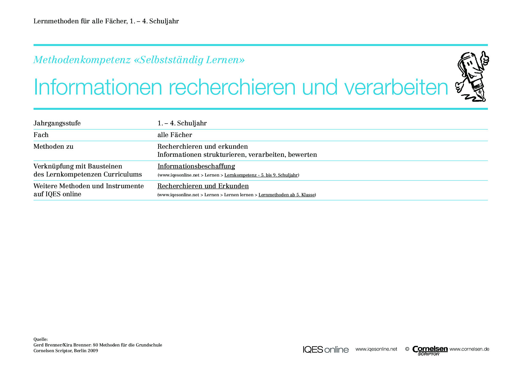 In dieser Methodensammlung finden Sie elf Methoden zum Umgang mit Informationen für die Grundschule. Diese sind in die Teilbereiche recherchieren und erkunden sowie strukturieren, verarbeiten und bewerten unterteilt.