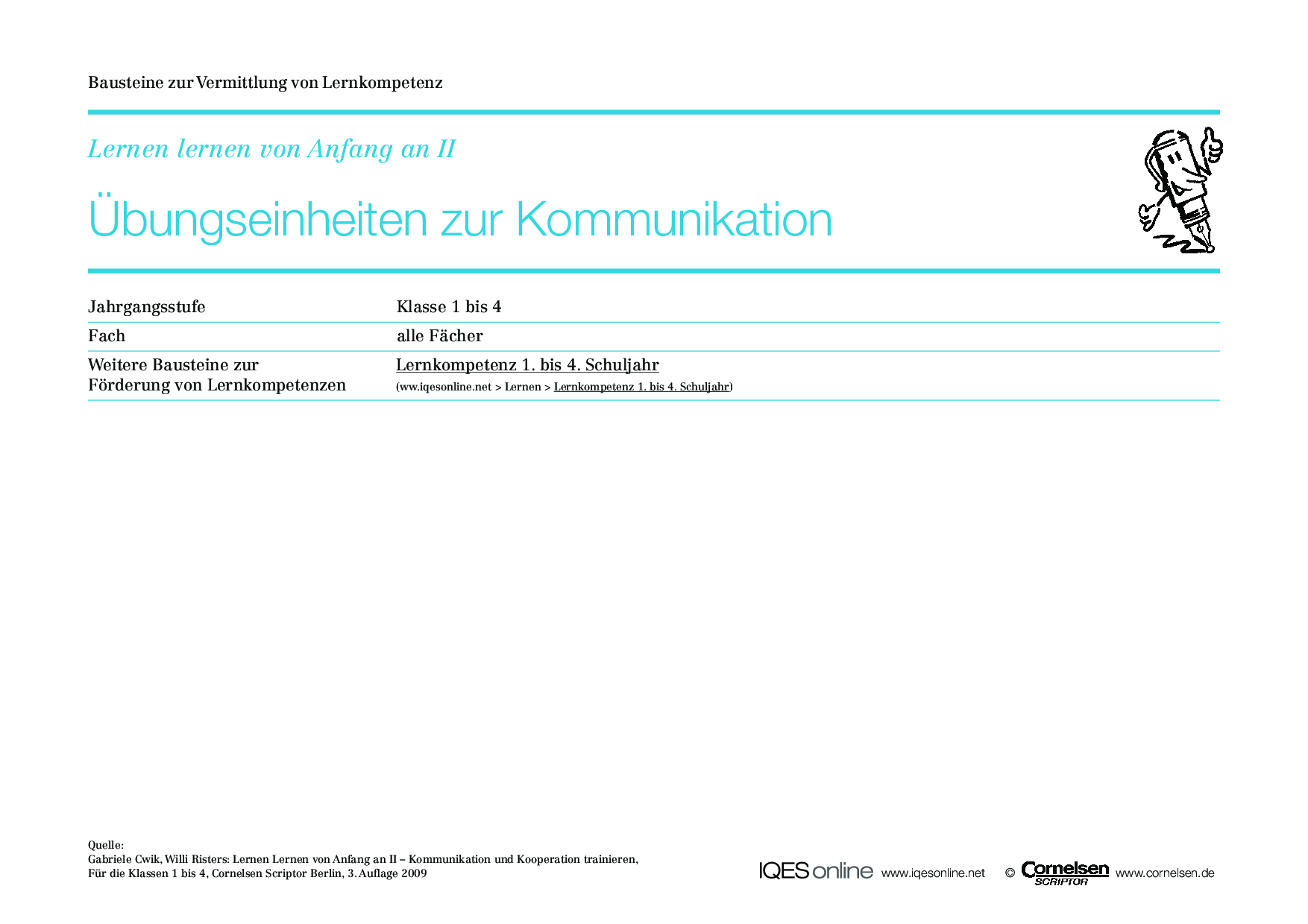 Herkunft: Gabriele Hüning, Willi Risters: Lernen Lernen von Anfang an II - Kommunikation und Kooperation trainieren für die Klassen 1 bis 4. Cornelsen Scriptor 2009. ISBN 9783589050833
