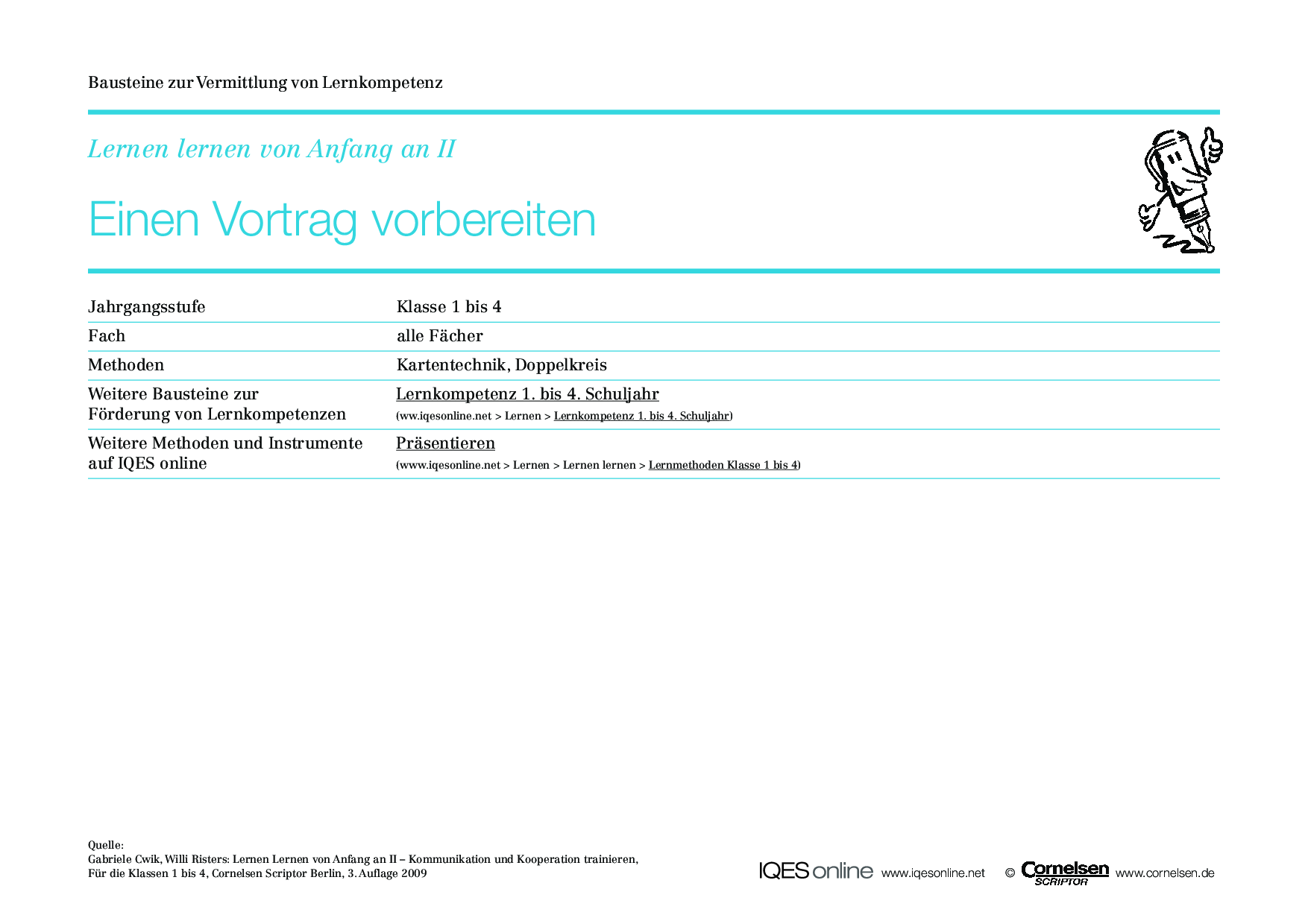 Herkunft: Gabriele Cwik, Willi Risters: Lernen Lernen von Anfang an I - Individuelle Methoden trainieren für die Klassen 1 bis 4. Cornelsen Scriptor, 2009. ISBN 9783589050826