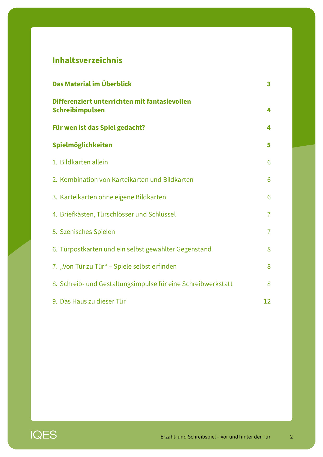 Erzähl- und Schreibspiel: Vor und hinter der Tür – Begleitheft für Lehrpersonen