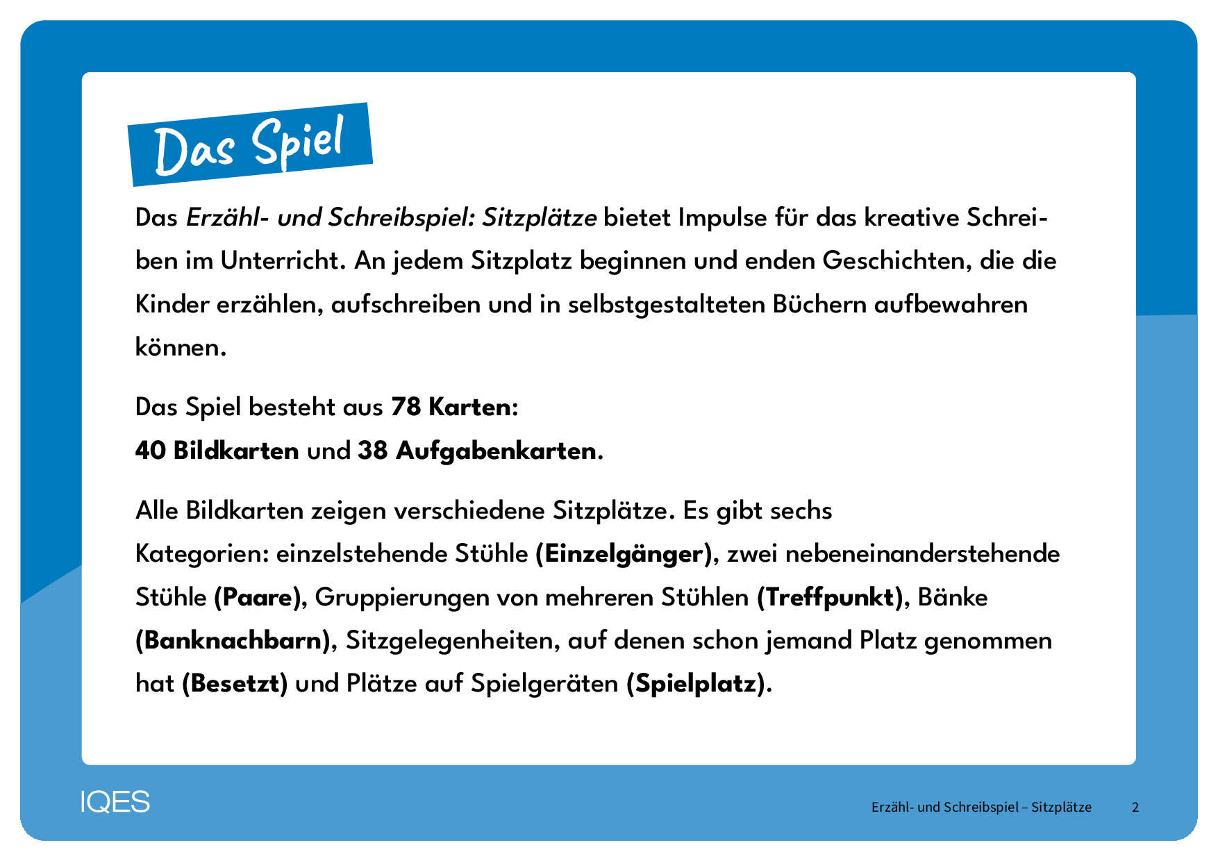 Erzähl- und Schreibspiel: Sitzplätze – Begleitheft für Lehrpersonen