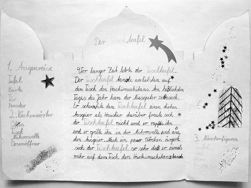 - schriftliche Texte verfassen, die von eigenen Erfahrungen, Beobachtungen und Fantasien ausgehen,
