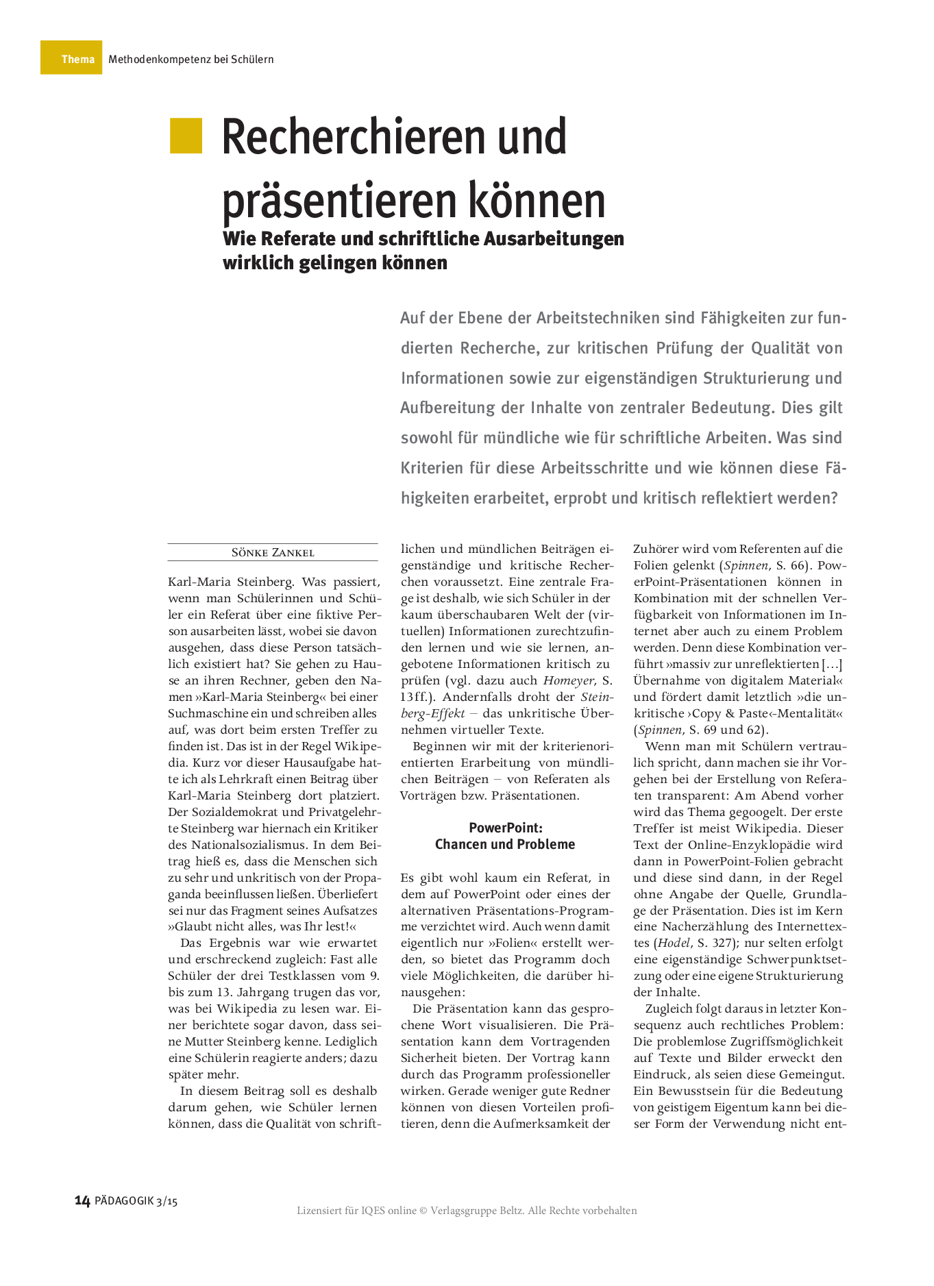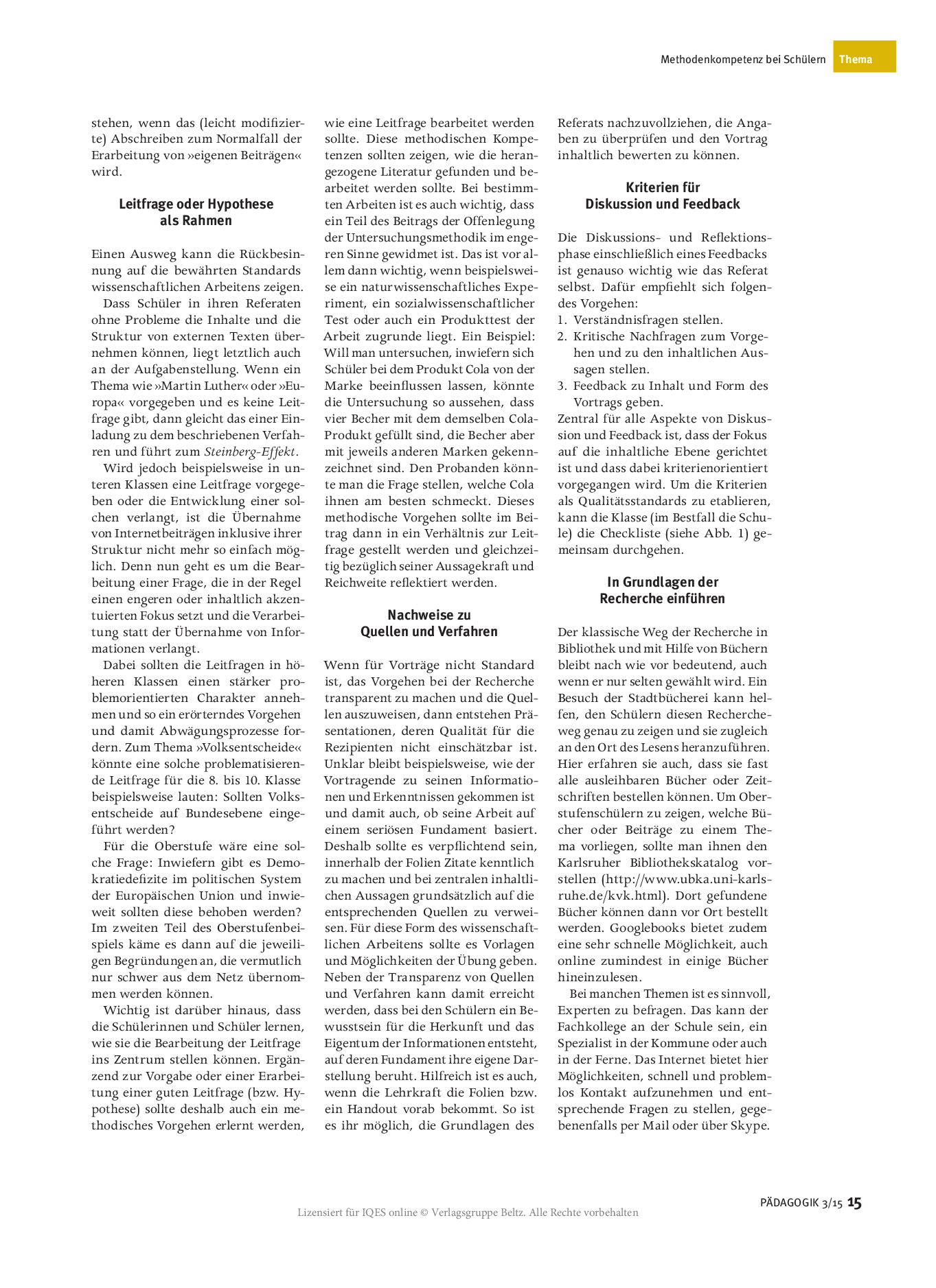 Herkunft: PÄDAGOGIK 3/15, lizensiert für IQES online © Verlagsgruppe Beltz
